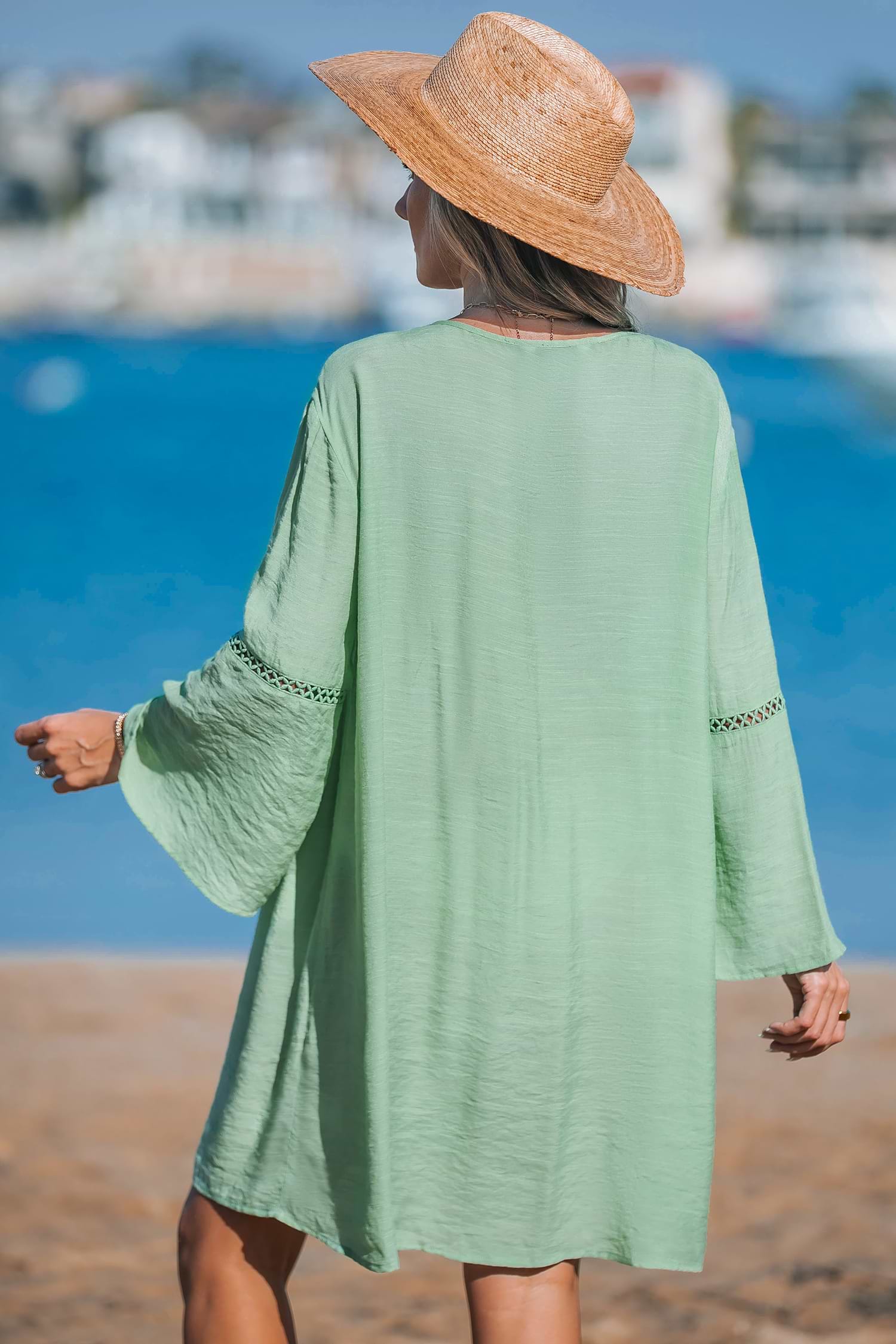 Robe cover up courte à col en V verte