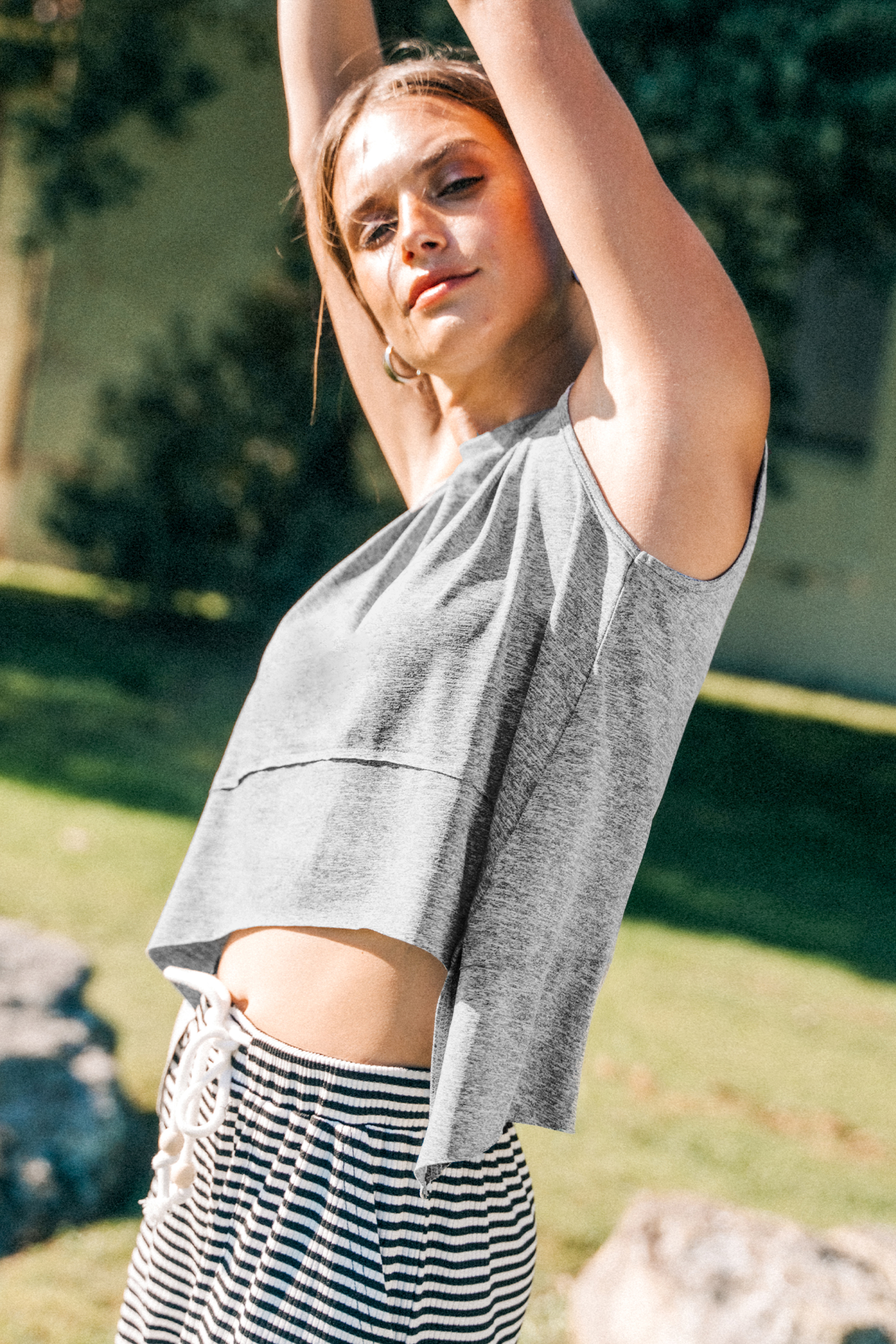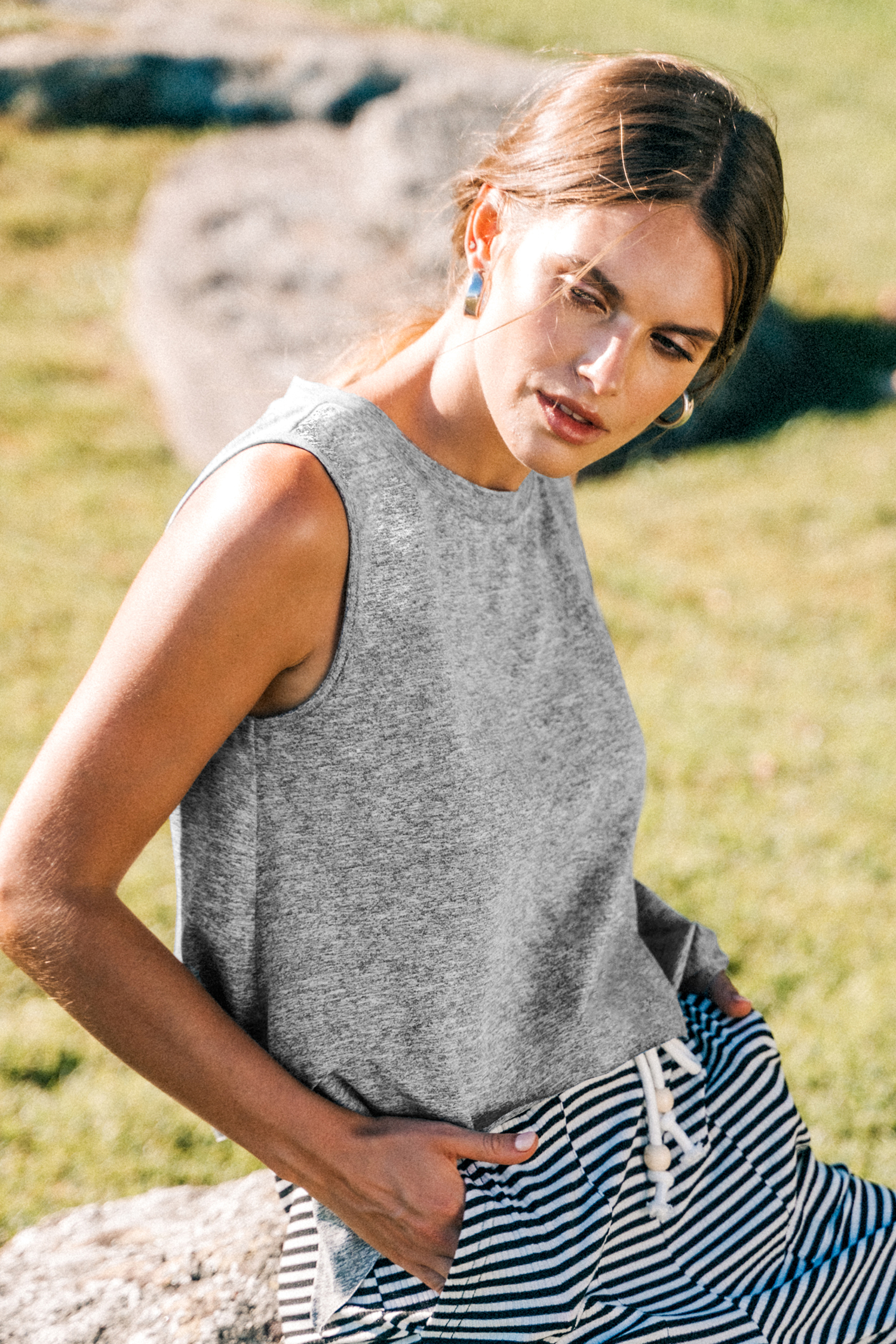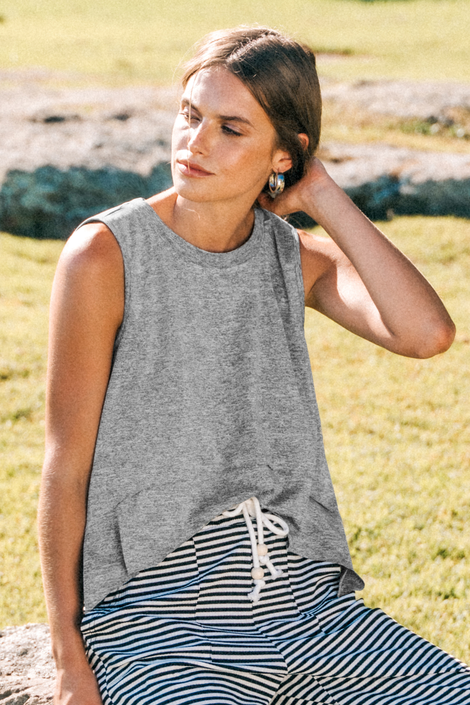 Débardeur asymétrique en jersey gris à col rond