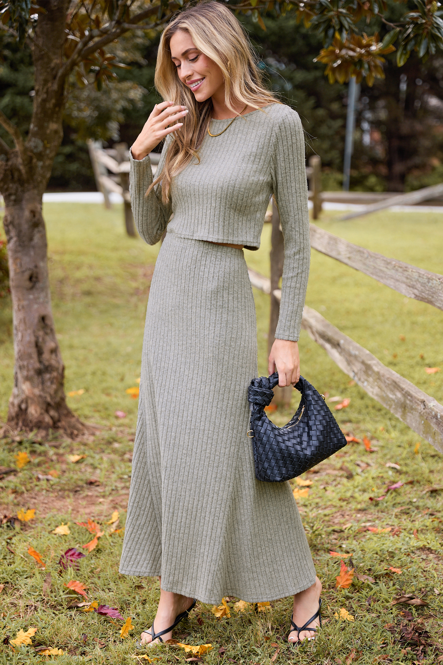 Haut en tricot côtelé à manches longues avec jupe longue gris