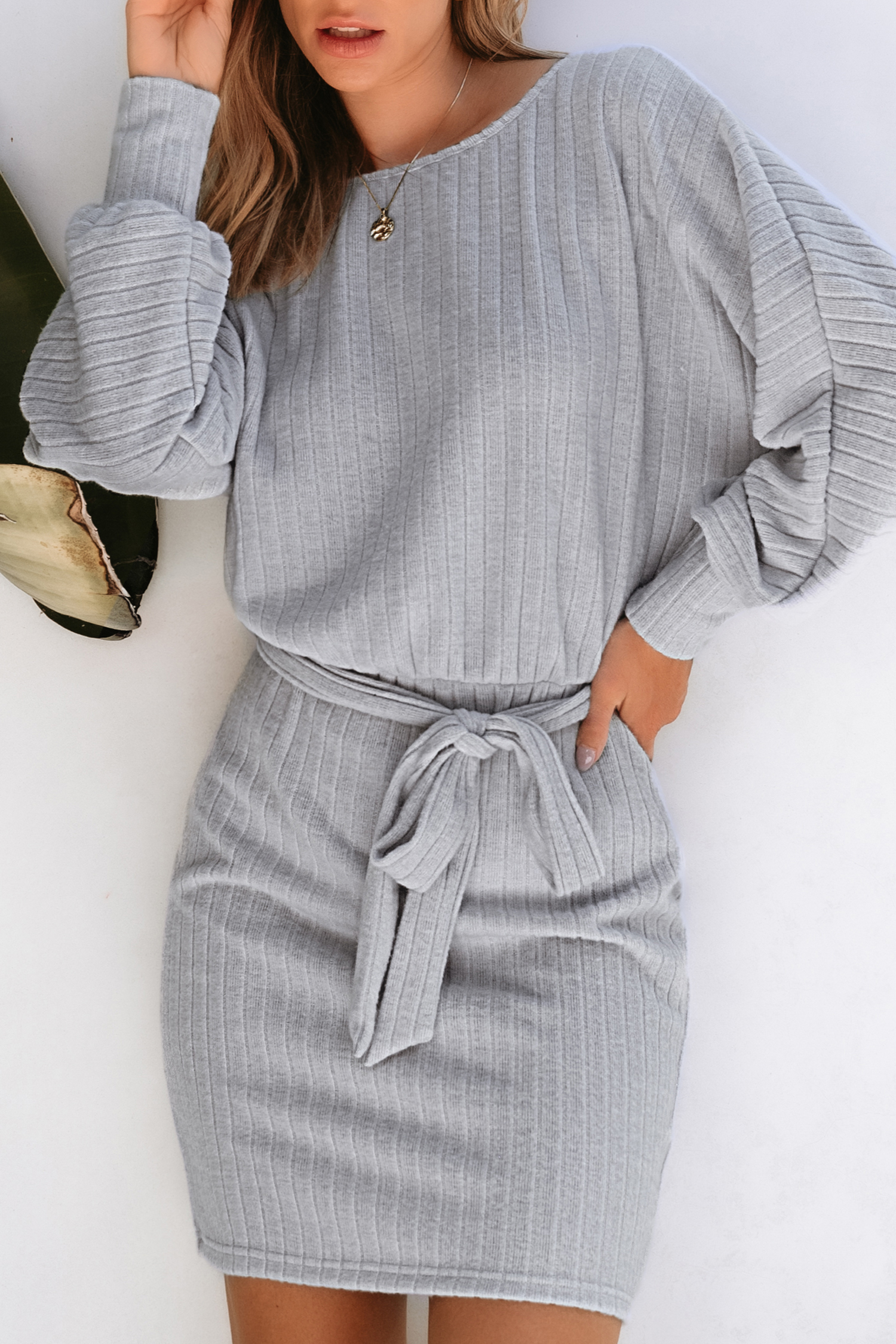 Robe à col scoop et ceinture grise