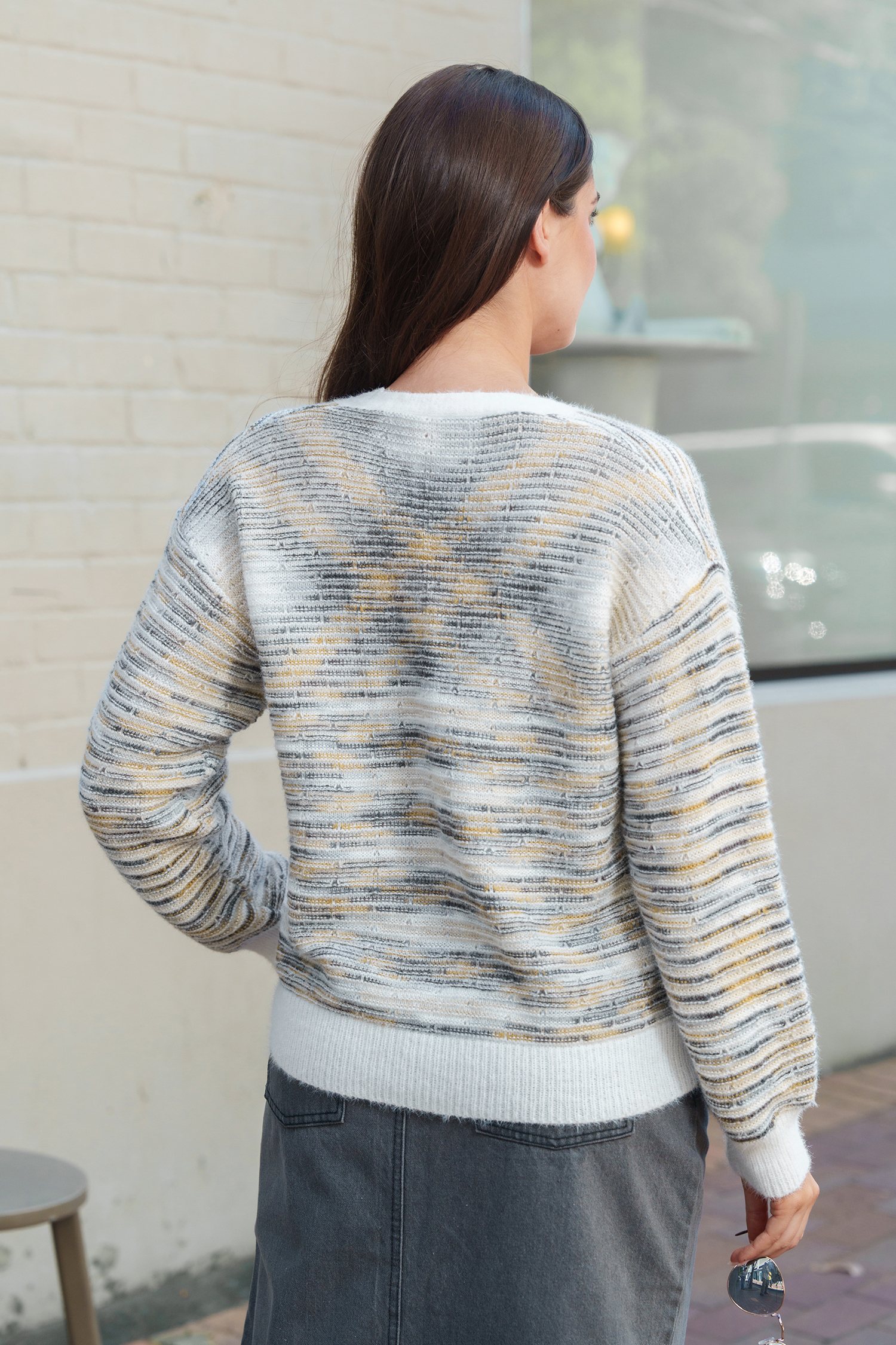 Cardigan en tricot à col en V et boutons au devant avec rayures