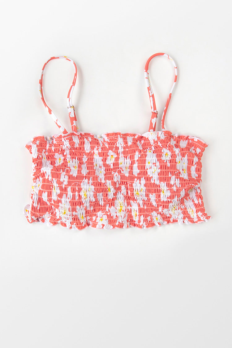 Haut de bikini à bandeau smocké imprimé floral