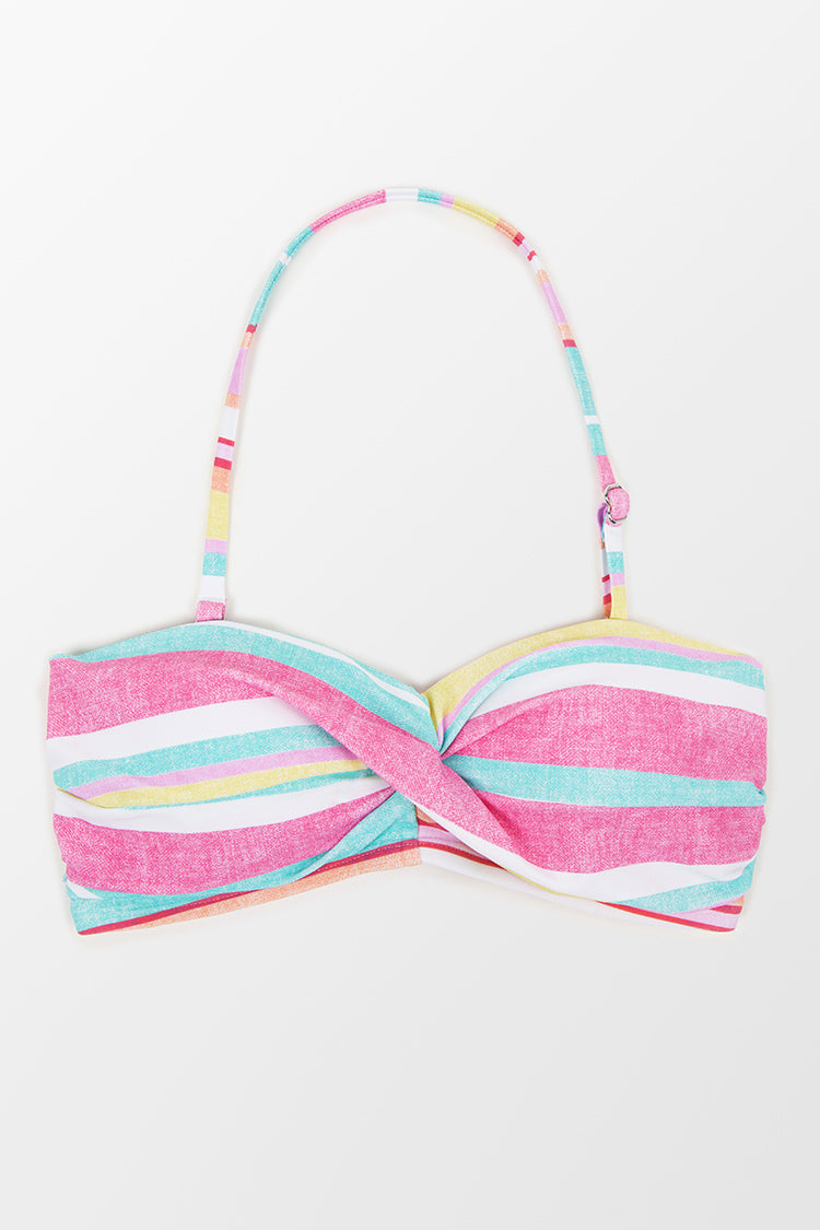Haut de bikini bandeau torsadé moulé à rayures