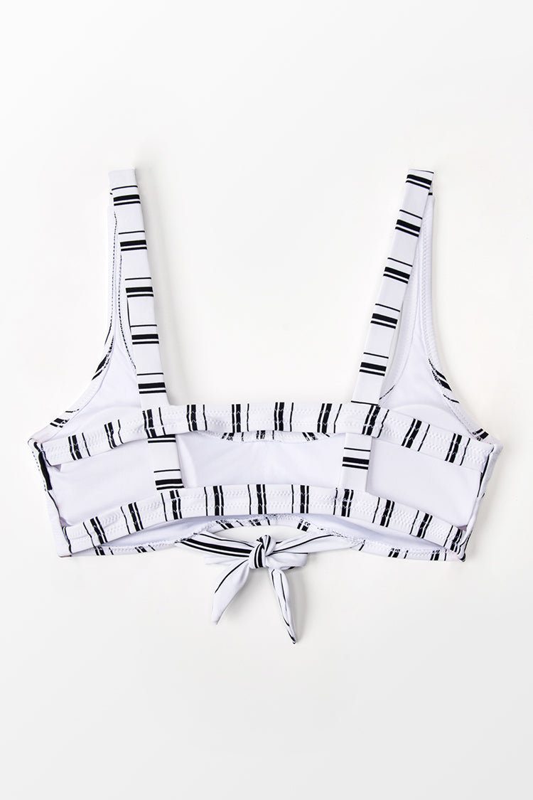 Haut de bikini brassière à rayures bleu marine et blanc