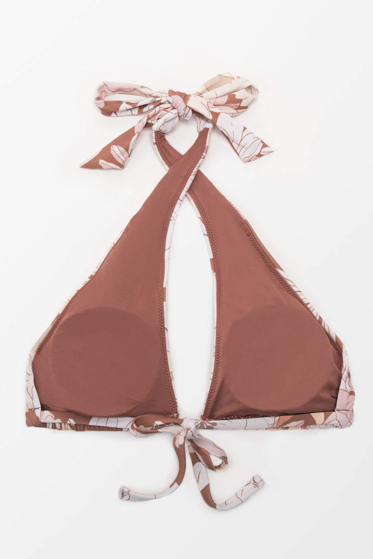 HomeHaut de bikini fleuri croisé à dos nu et à licou