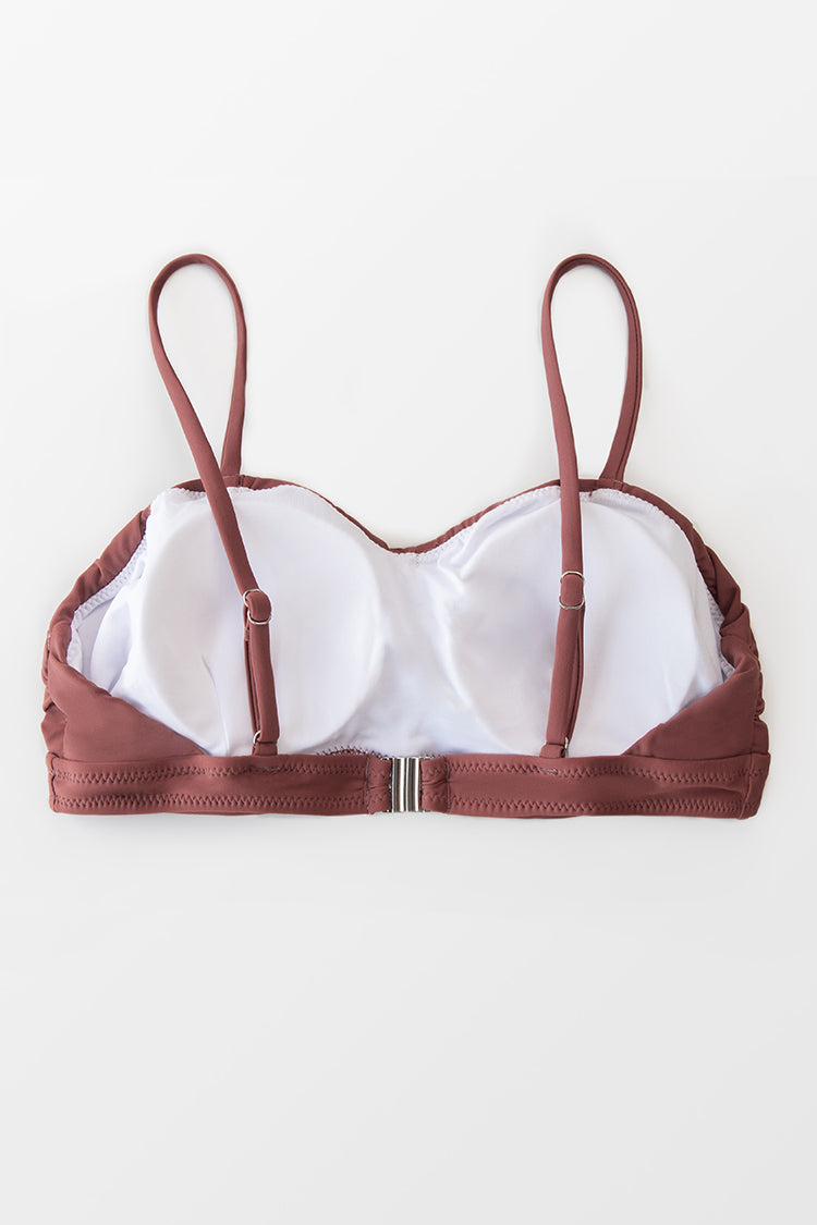Haut de bikini froncé rose poudré