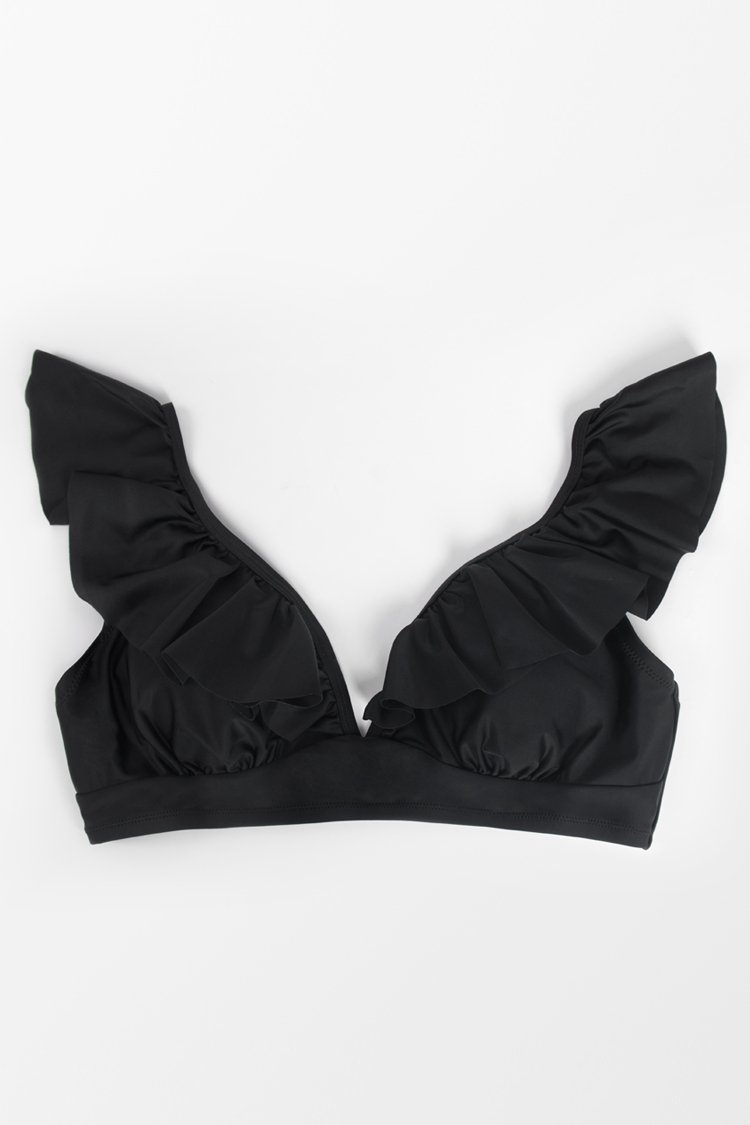 HomeHaut de bikini grande taille à volants noir