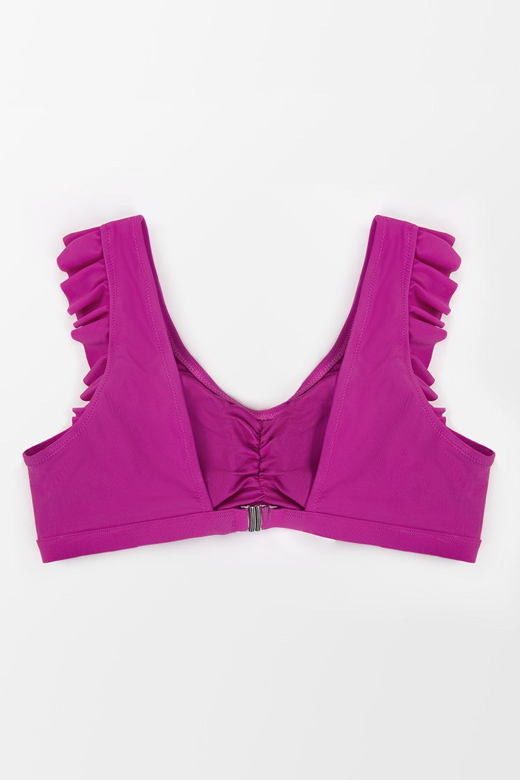Haut de bikini grande taille fuchsia à volants dans le dos