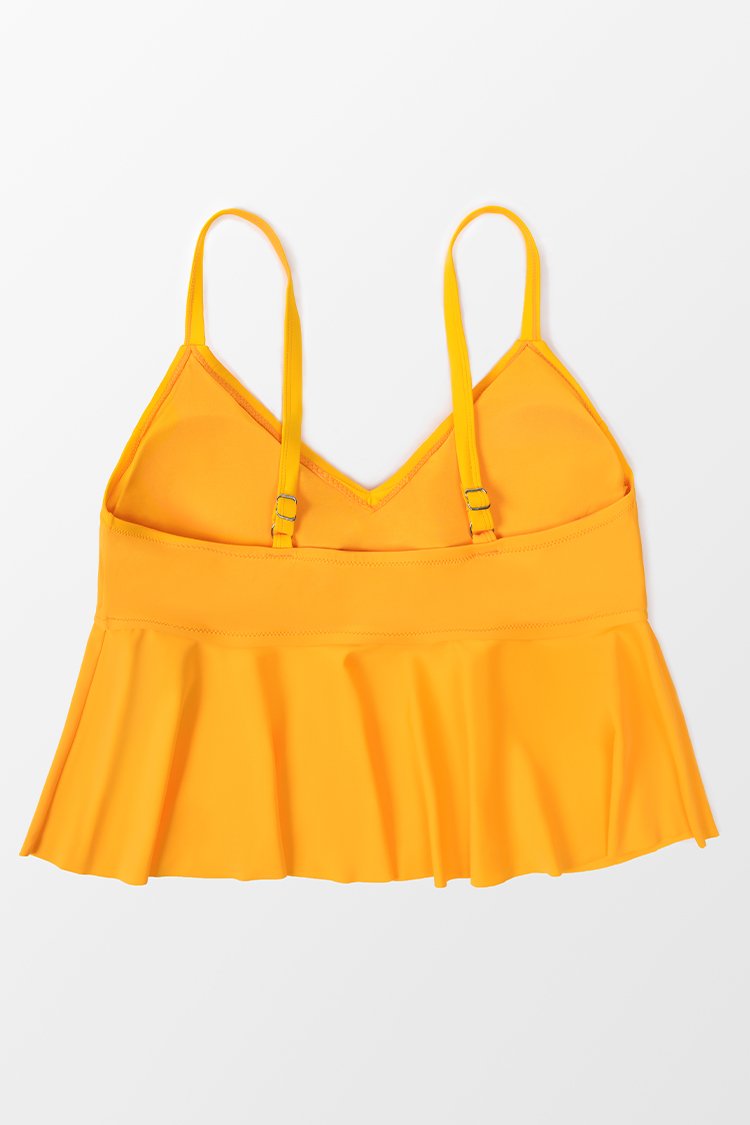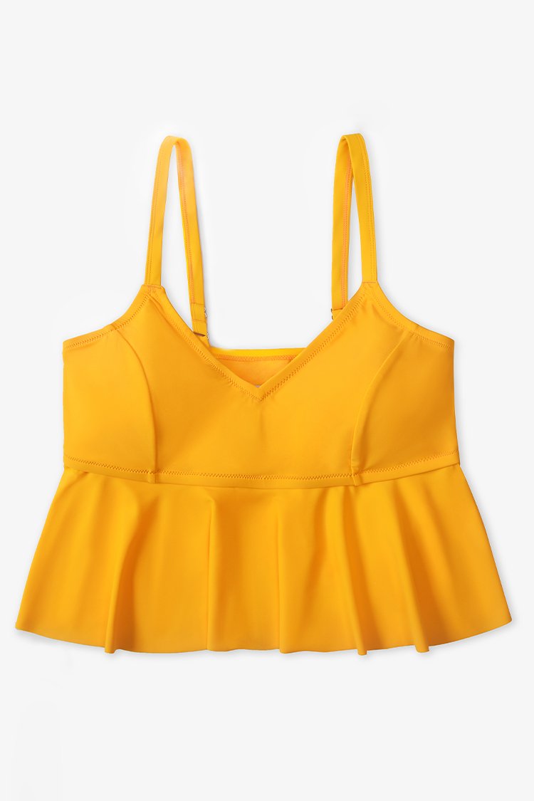 HomeHaut de bikini grande taille jaune à col en V et à volants