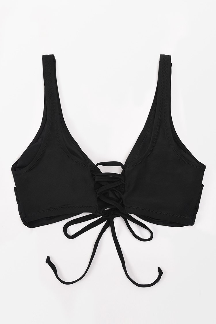 HomeHaut de bikini grande taille noir à col en V et à lacets