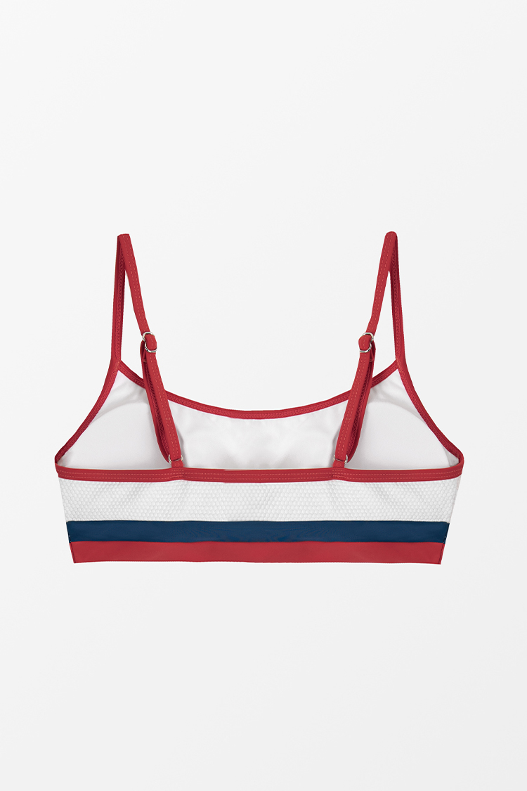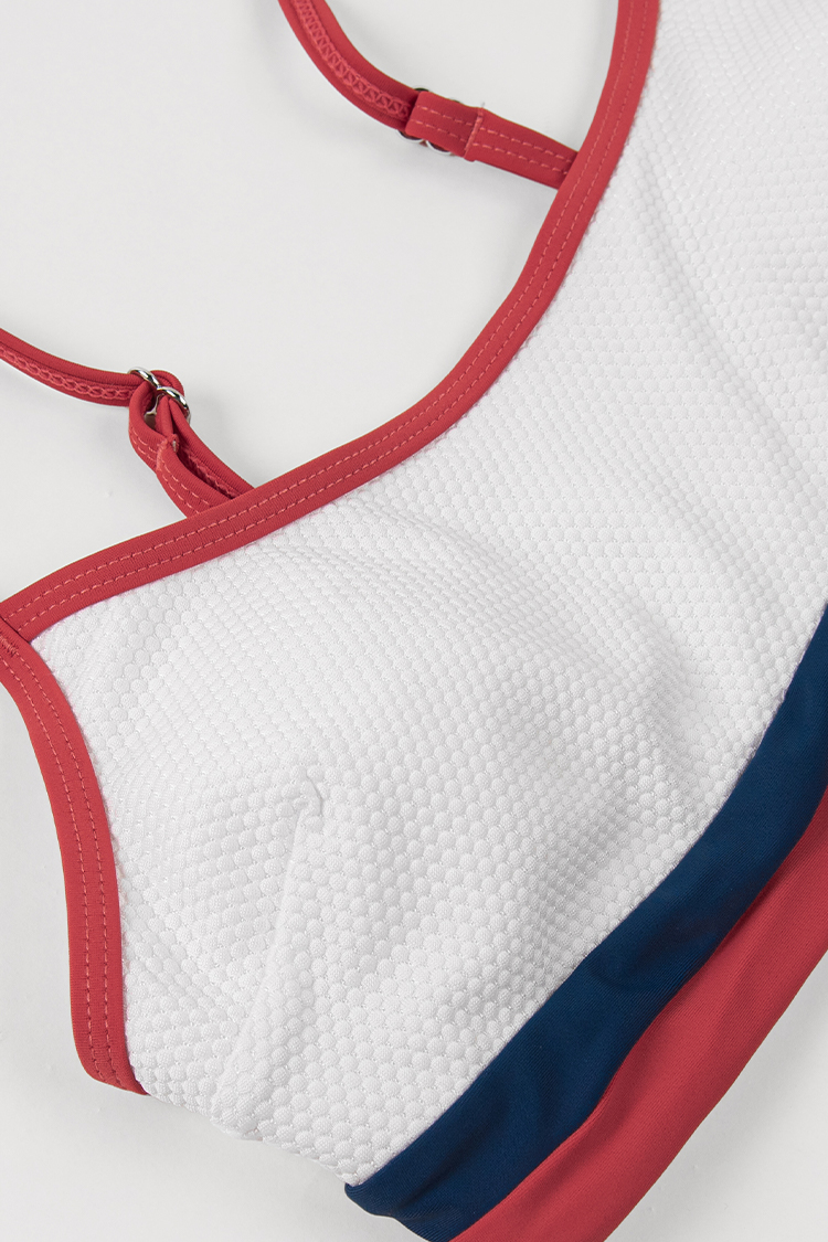 Haut mi-kini bloqué en piqué au bord de la piscine du 4 juillet