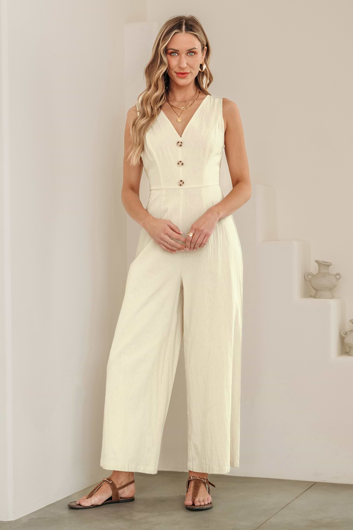 Combinaison beige tissée à col en V