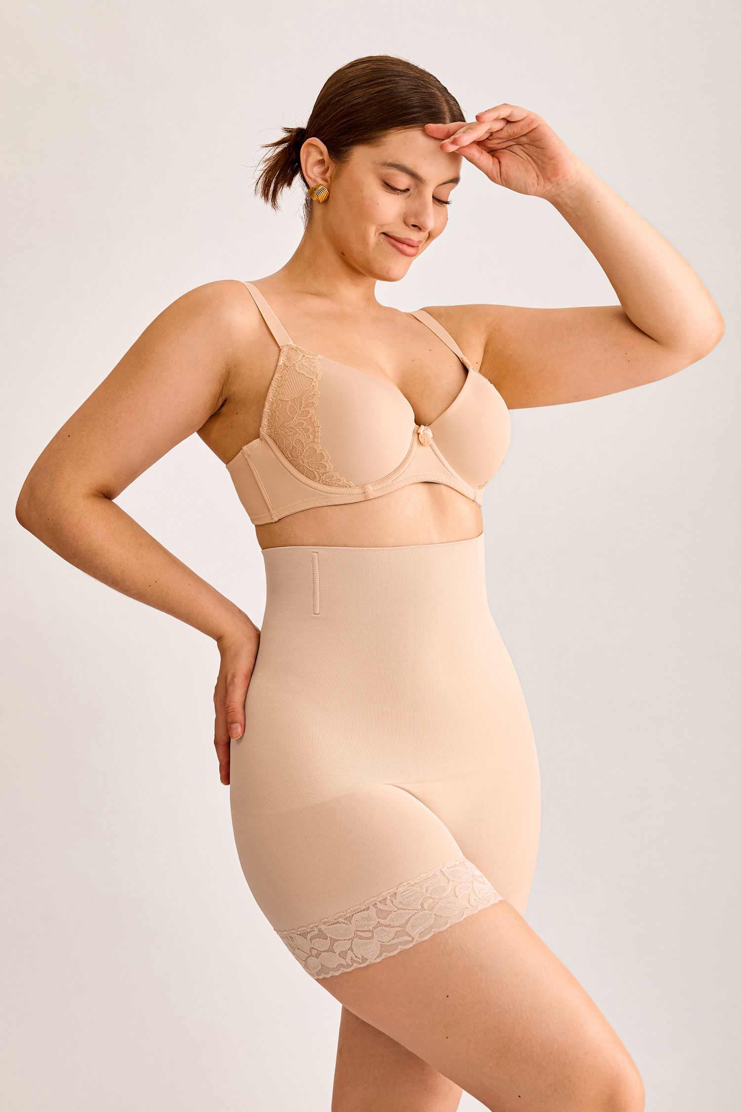 Les gaines sculptantes sont ajustées pour modeler la silhouette — prenez une taille au-dessus pour une coupe plus ample.