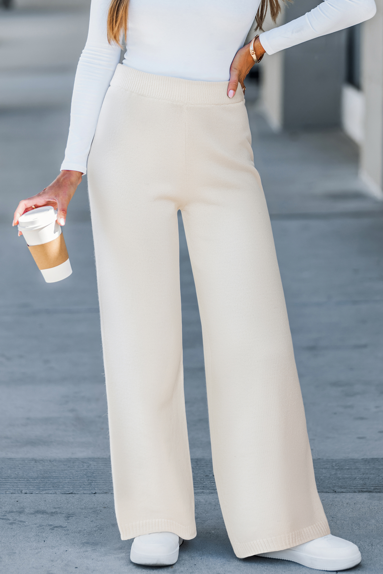 Ce pantalon crème en maille est fait pour se détendre avec style. Sa coupe large et sa matière douce en font le choix parfait pour les journées à la maison ou les weekends relax.