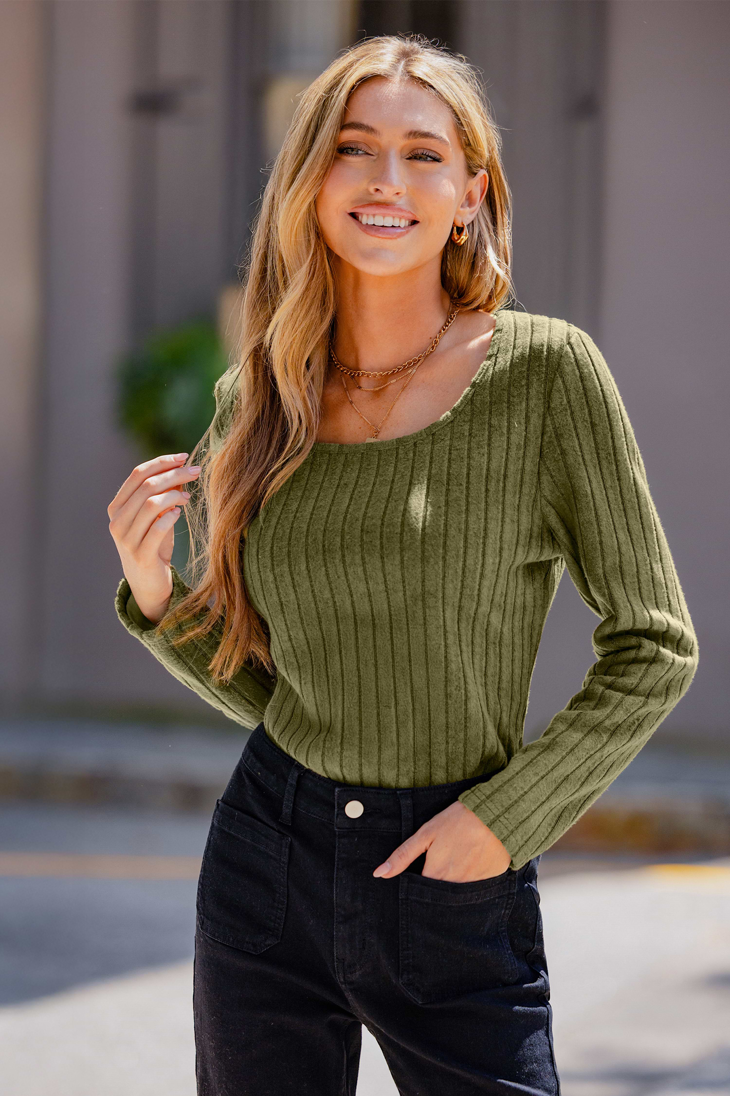 Ce haut vert est pensé pour un look classique ! Son encolure carrée et ses manches longues dessinent une silhouette nette et polyvalente, parfaite du travail au week-end.