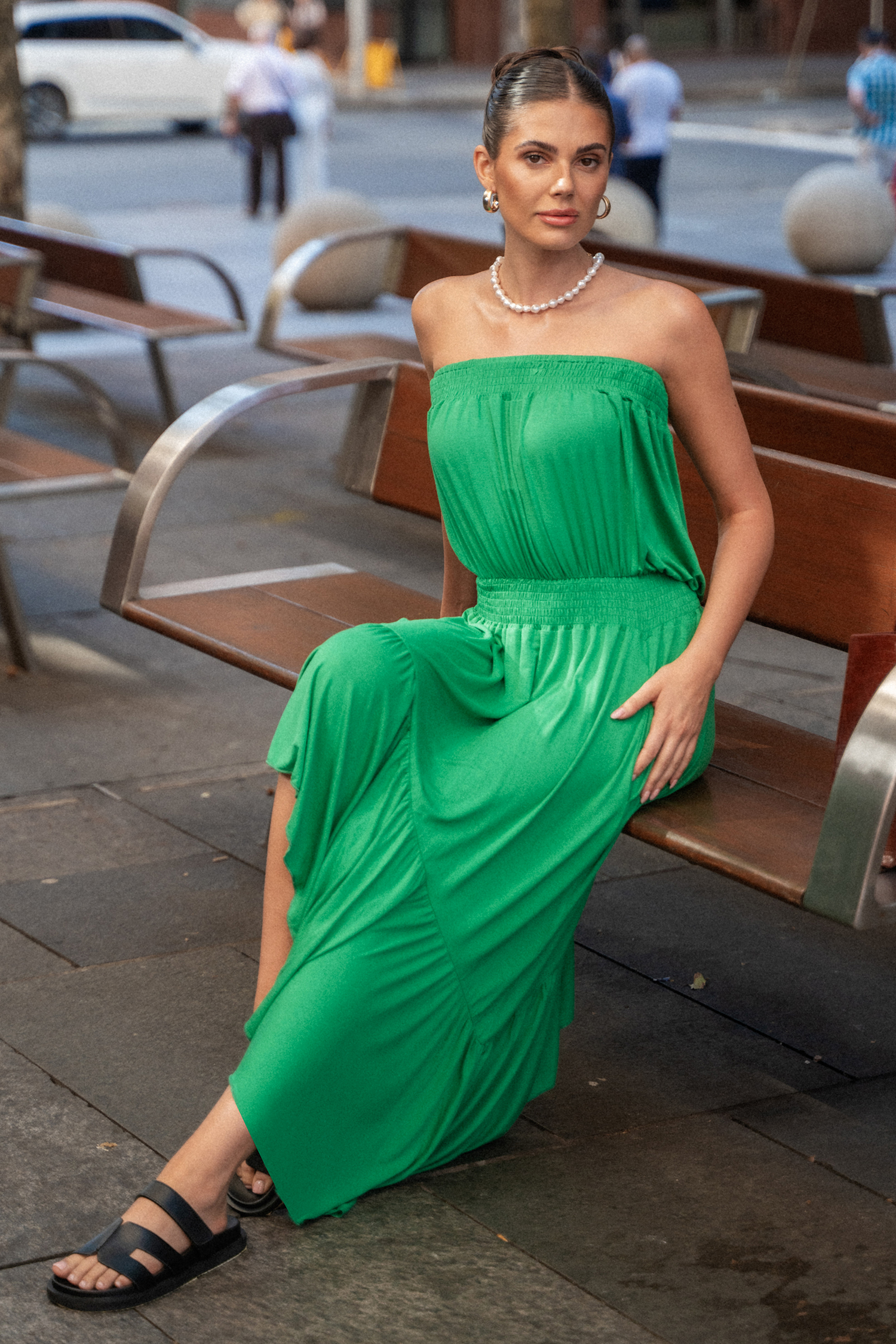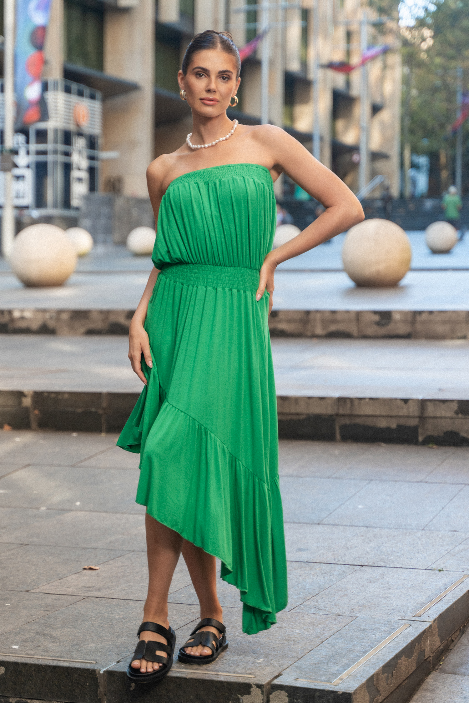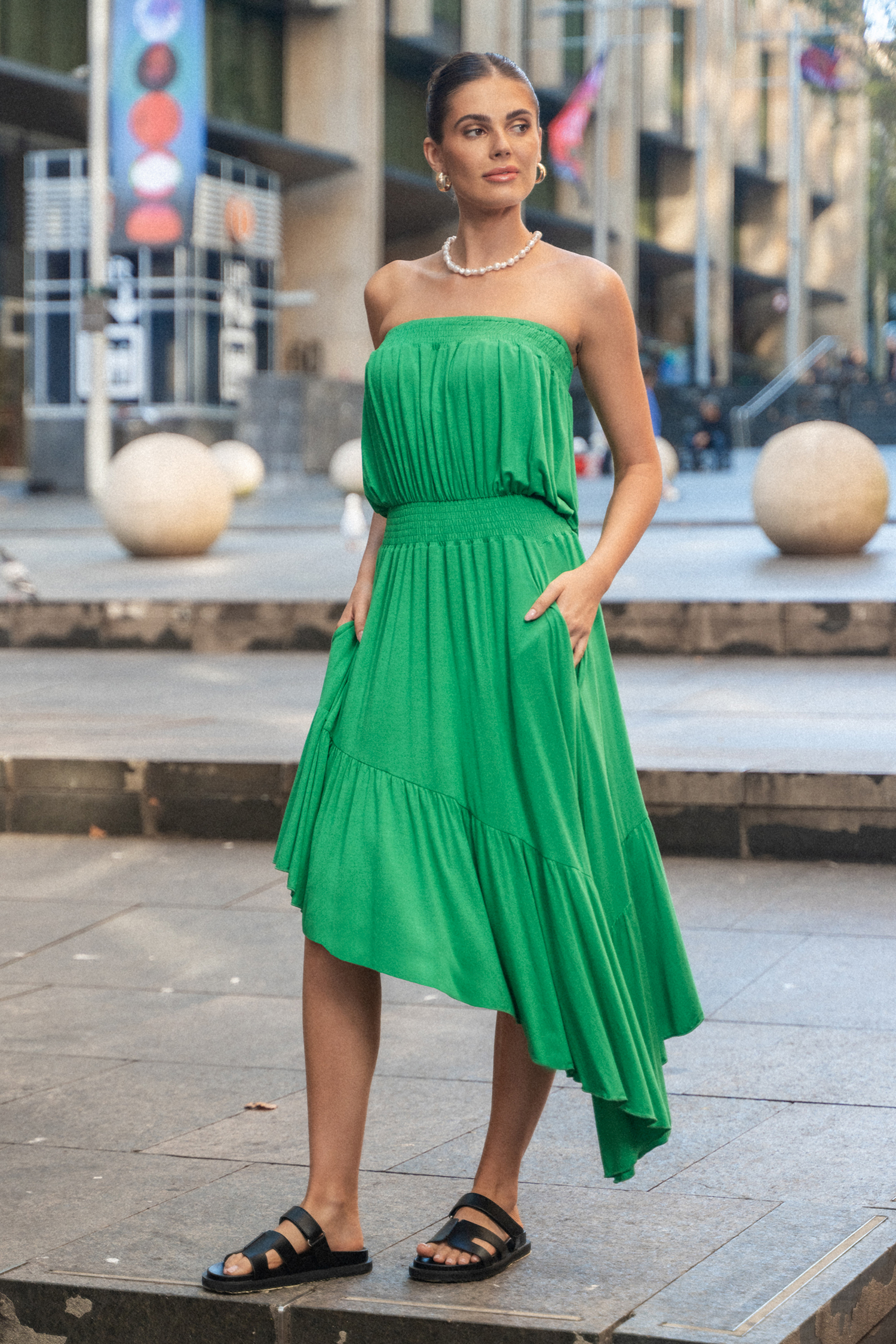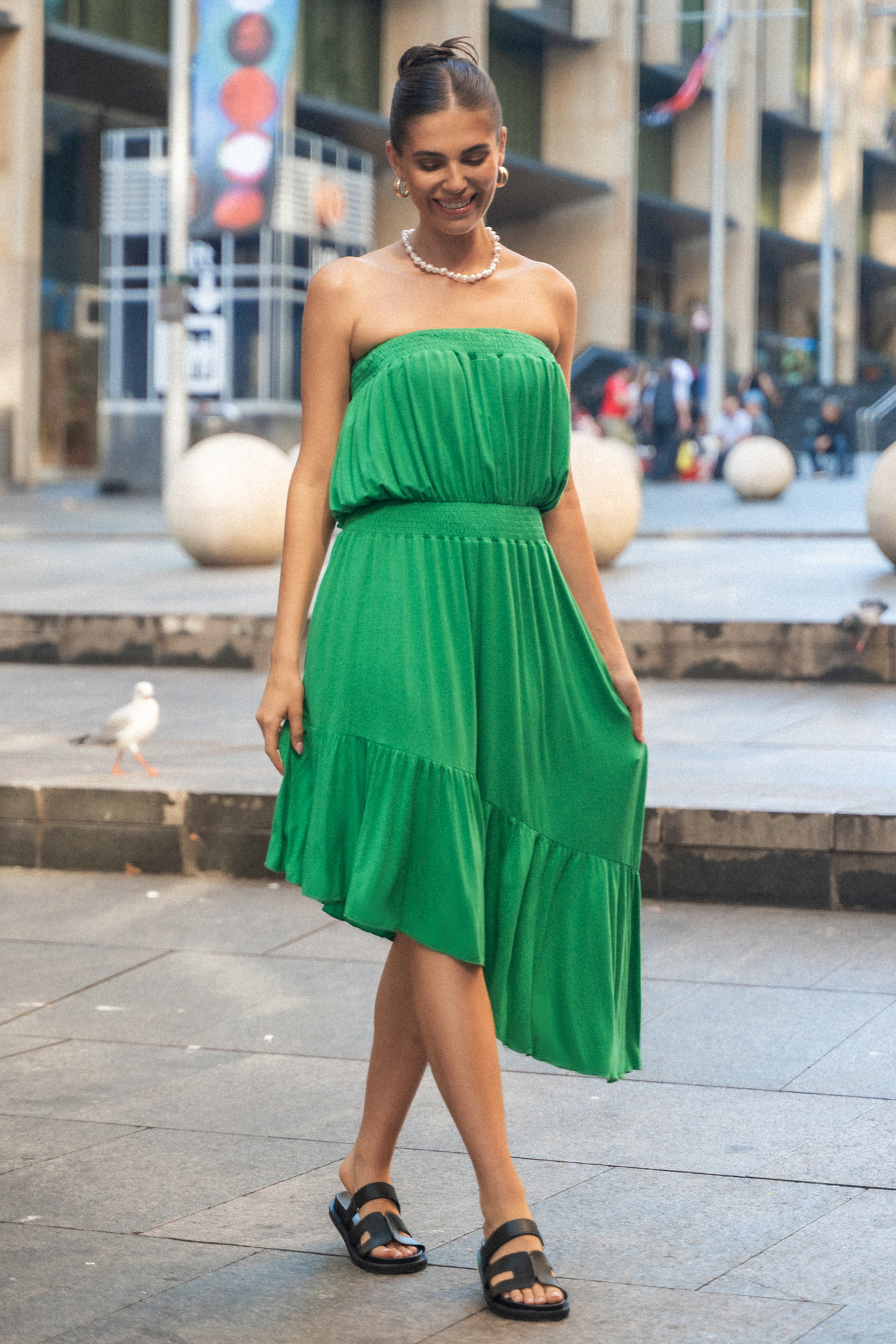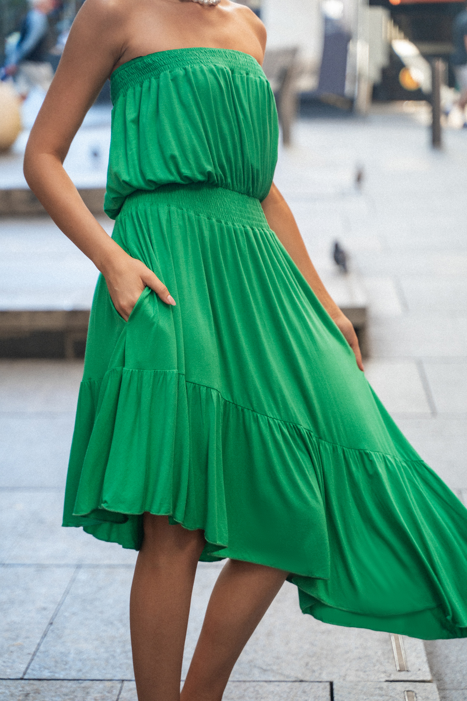 Robe tube avec ourlet à volants asymétriques verte