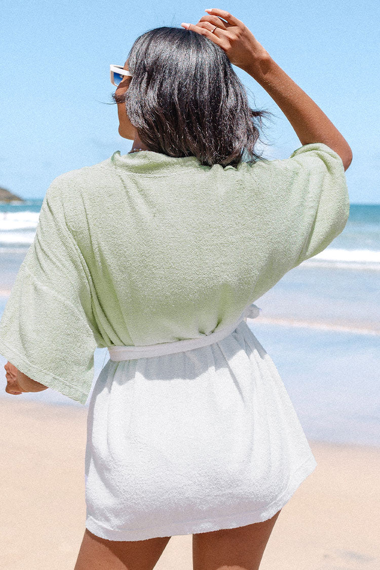 Kimono de plage à col en V et à ceinture