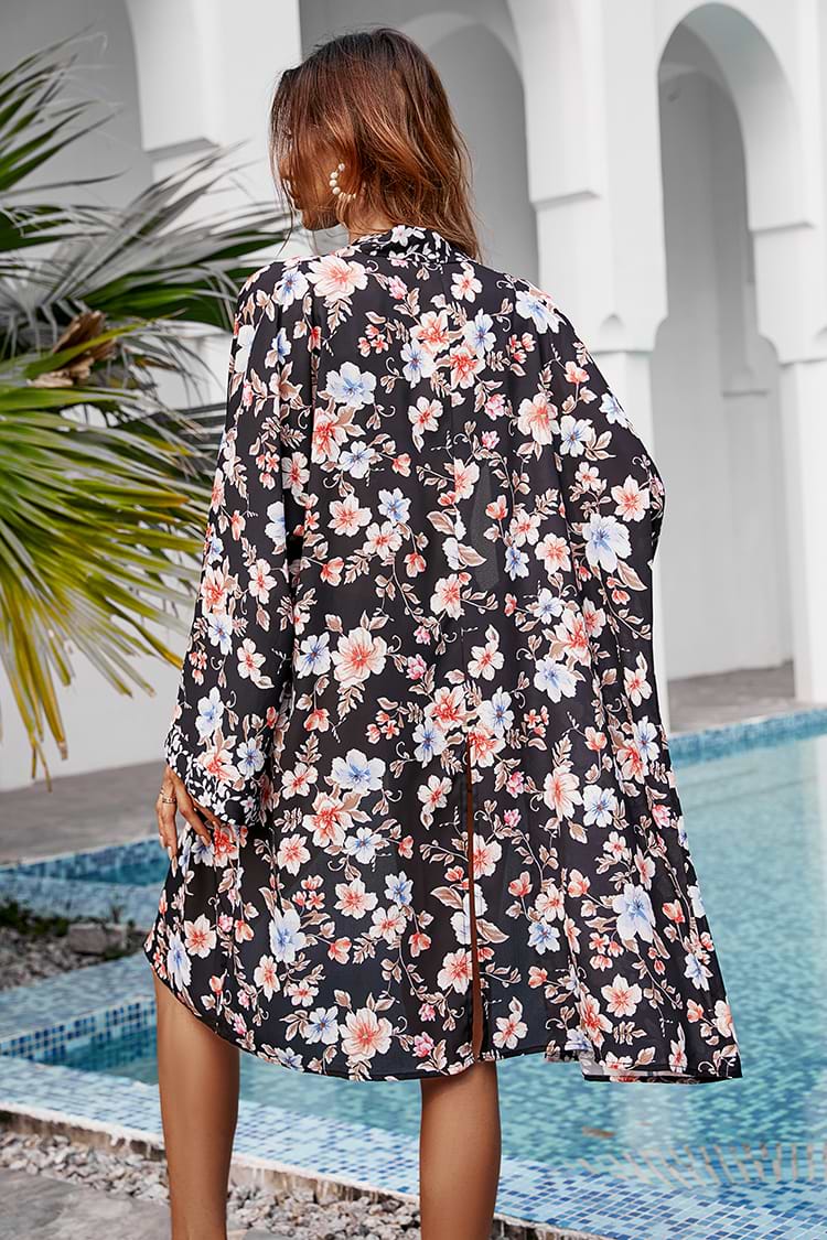 Kimono midi ouvert sur le devant à manches à épaules tombantes