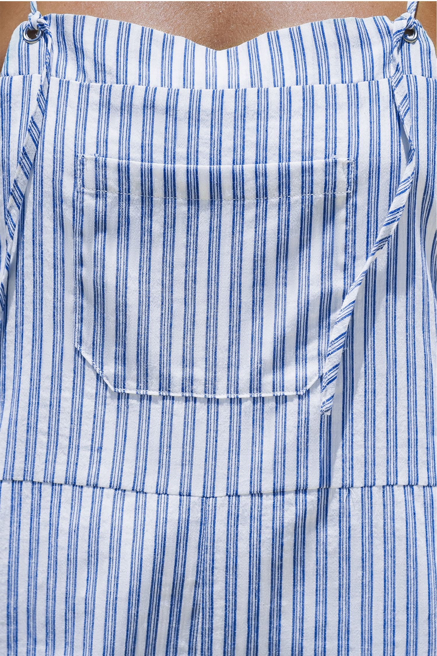 Salopette en pur coton à jambes droites et rayures bleu ciel