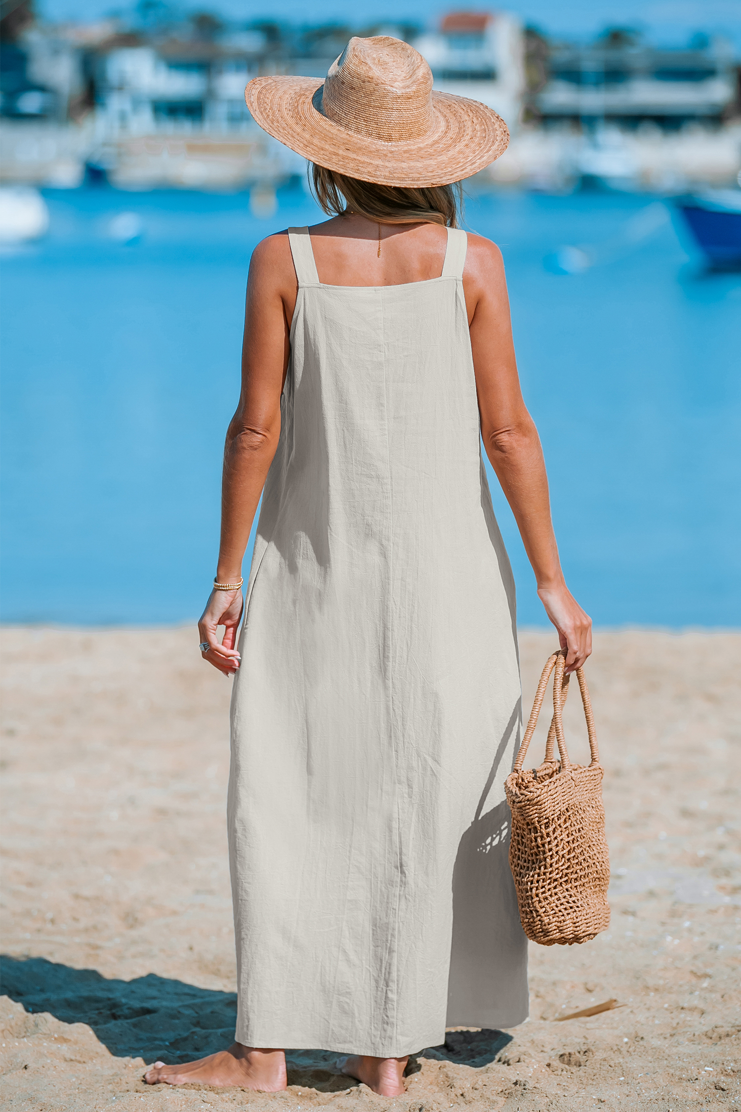 HomeRobe ample en pur coton maxi sans manches en lin
