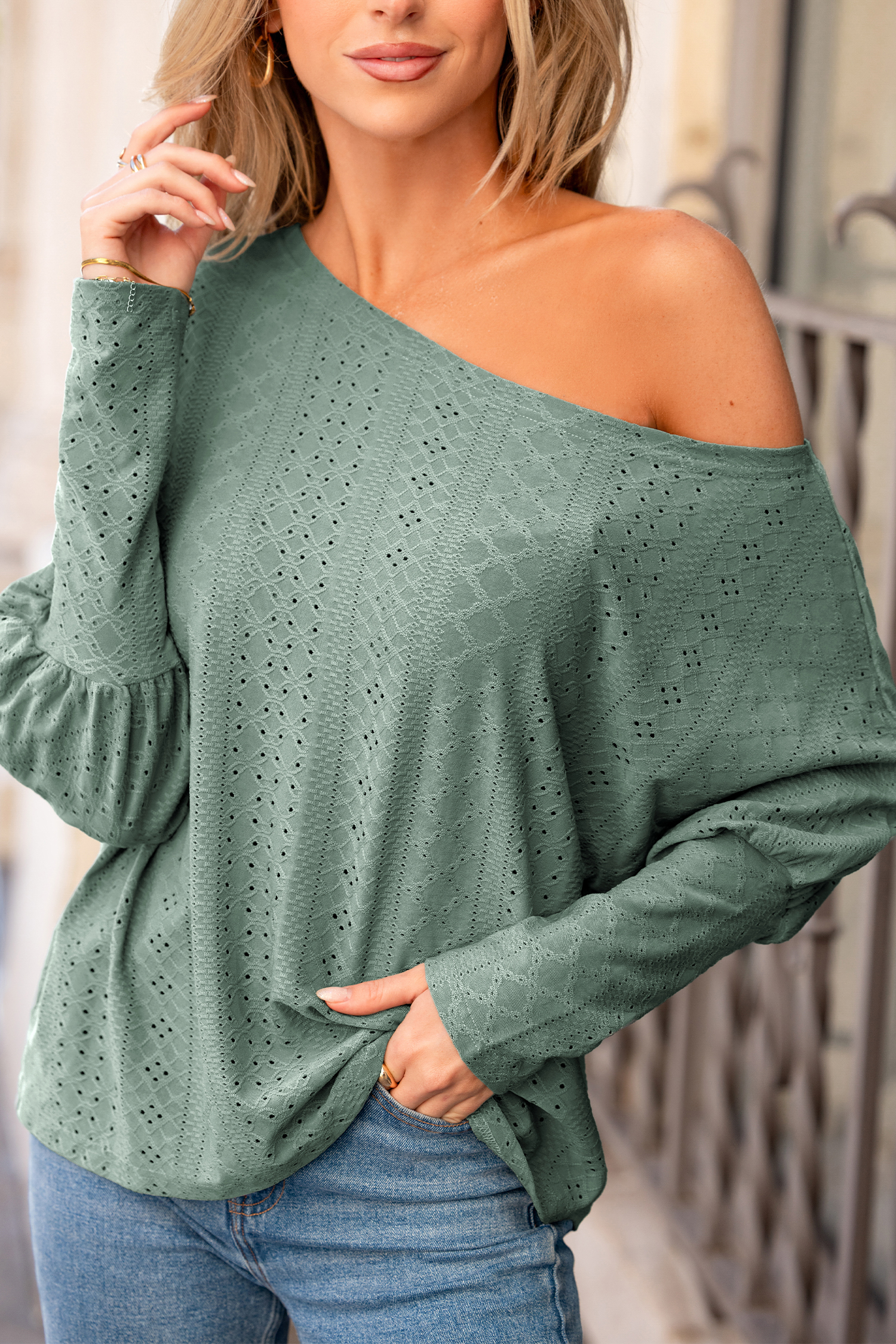 Ce haut vert insuffle une énergie ludique et confiante ! Son encolure asymétrique et ses manches longues ajoutent une touche moderne et séduisante à une maille confortable.