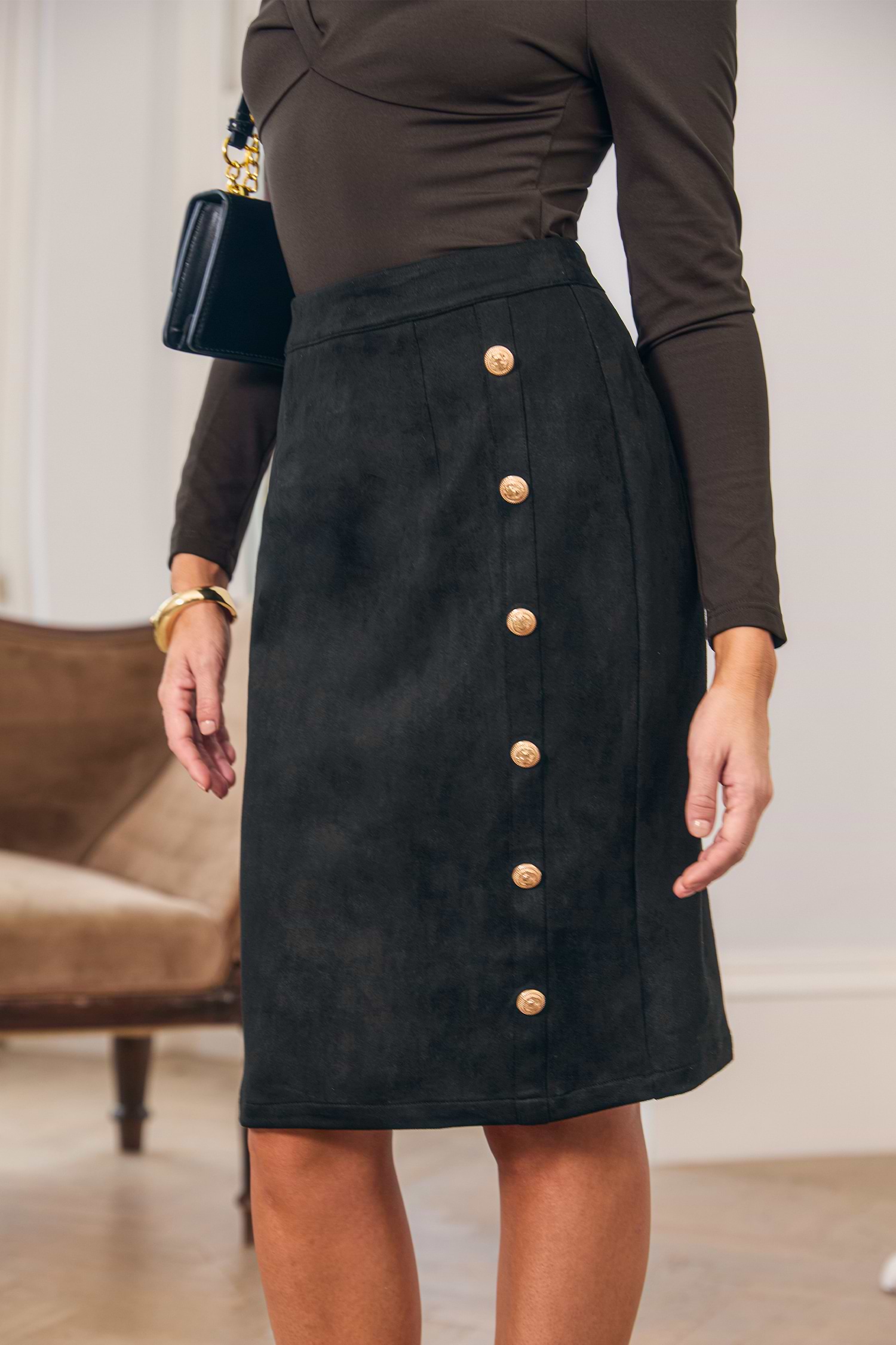 La jupe midi noire apporte une énergie épurée et sans effort à n’importe quelle tenue ! Ses boutons latéraux et sa longueur midi offrent un style soigné et facile à adopter.