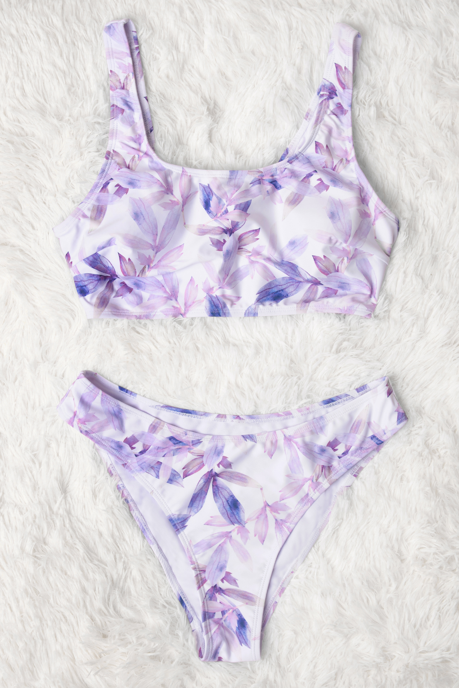Maillot de bain 3 pièces à motif de feuilles et floral