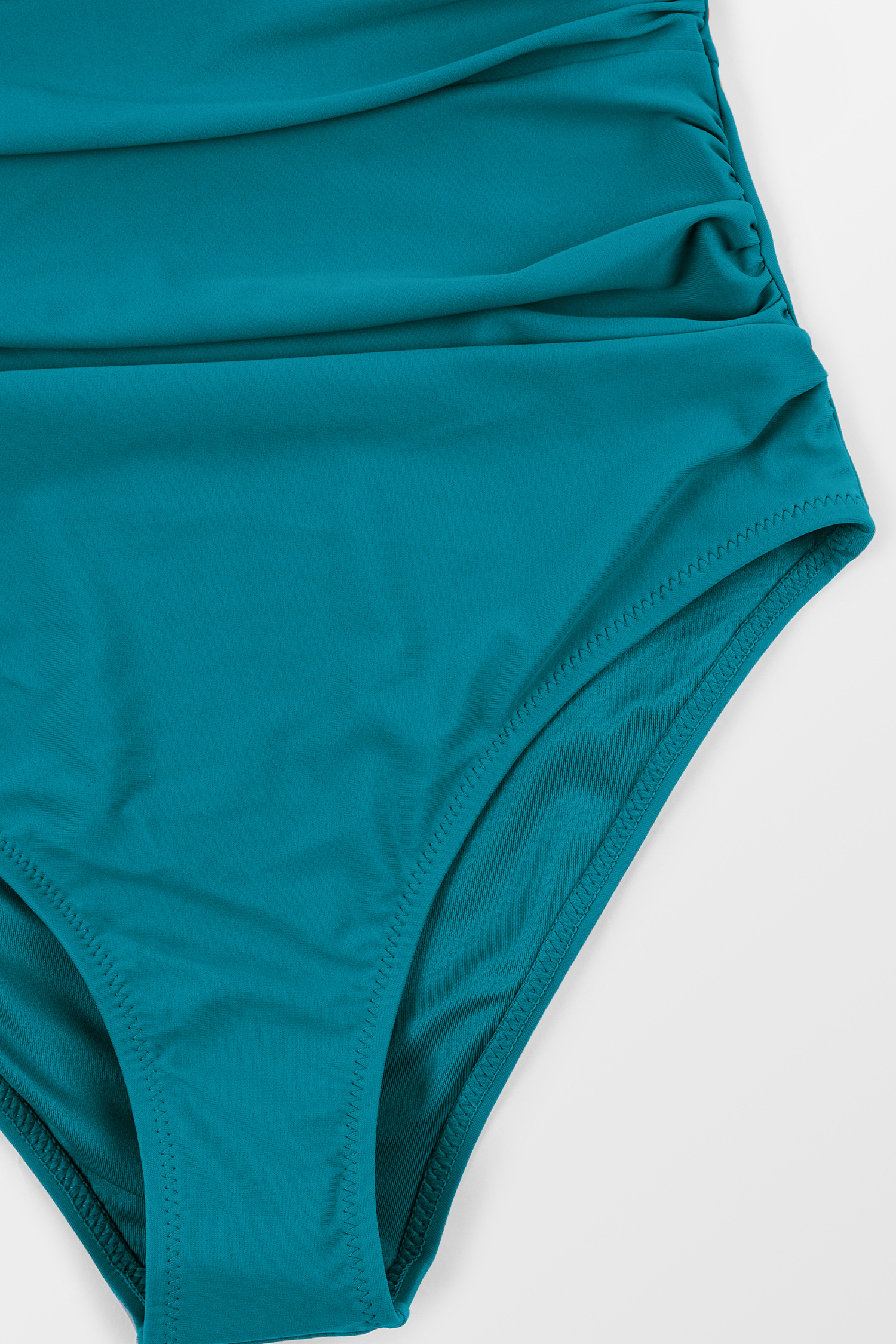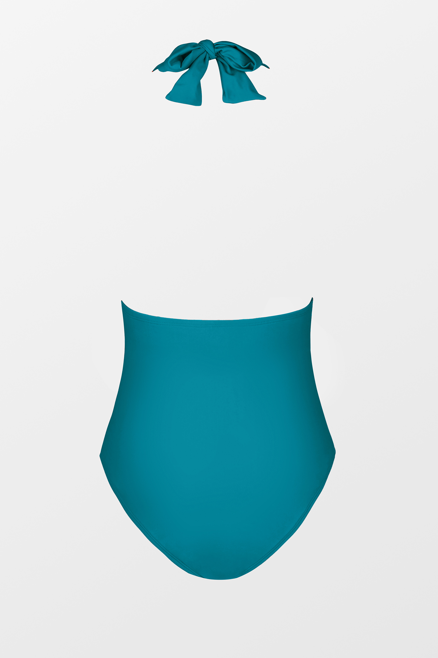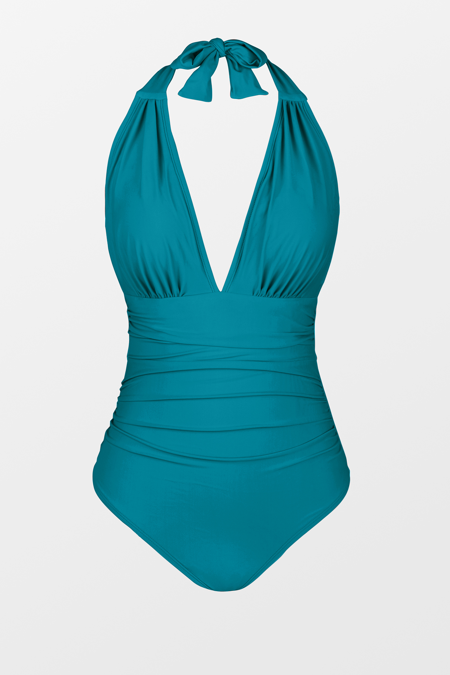 Maillot de bain une pièce ventre plat à col licou ruché bleu