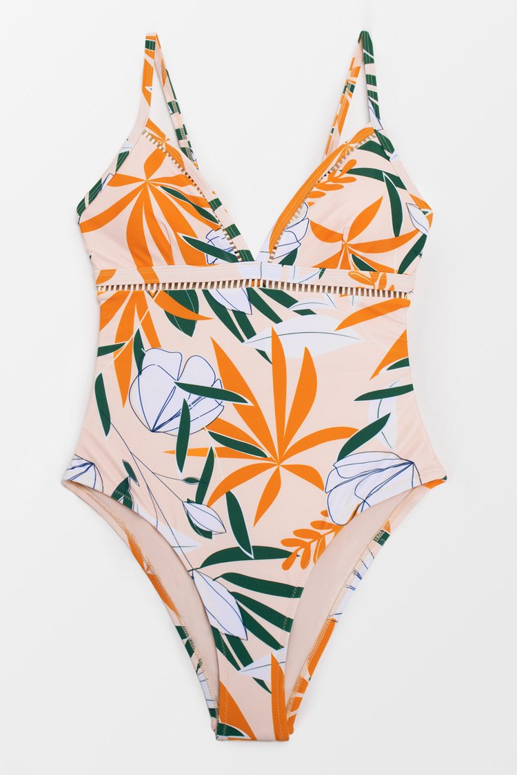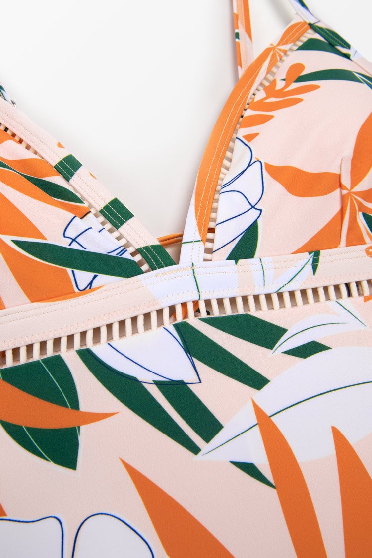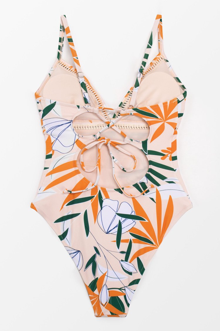 Maillot de bain une pièce à lacets et imprimé feuilles