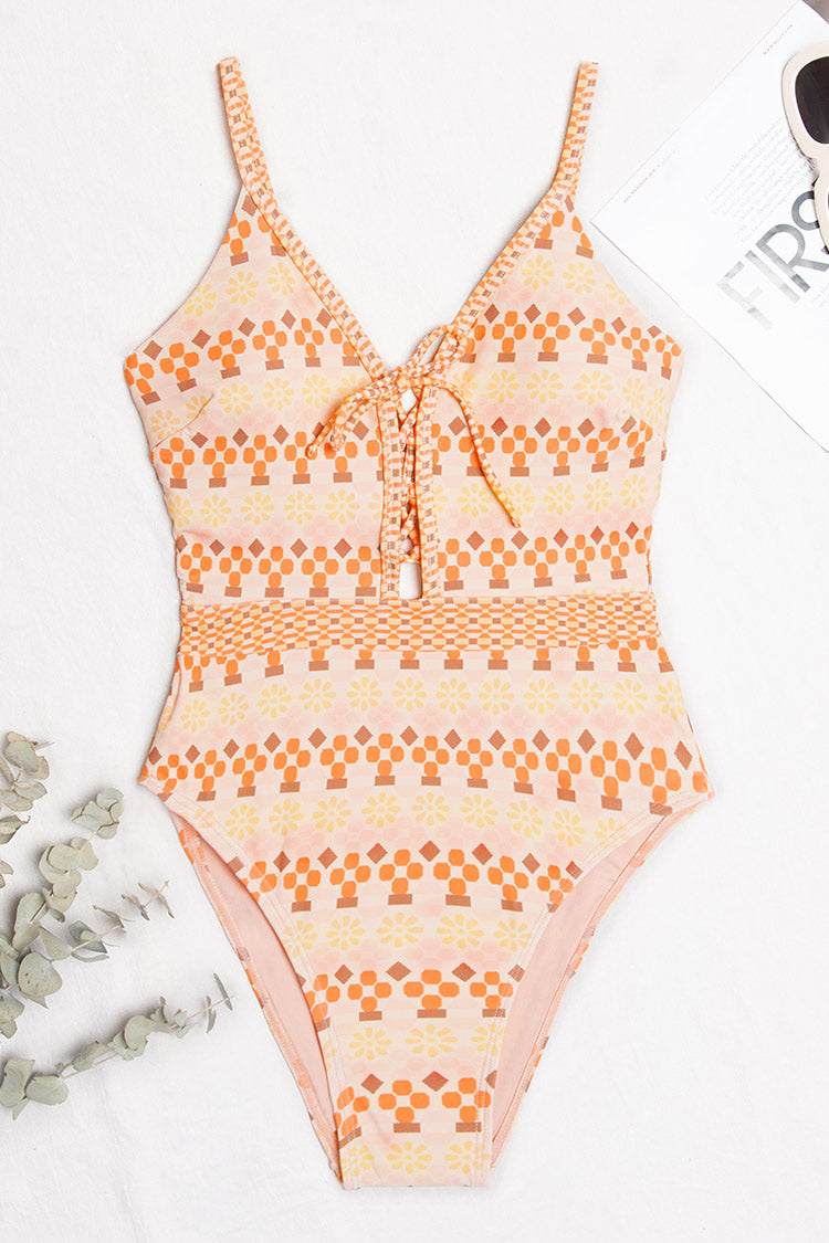 Maillot de bain une pièce à lacets et imprimé géométrique