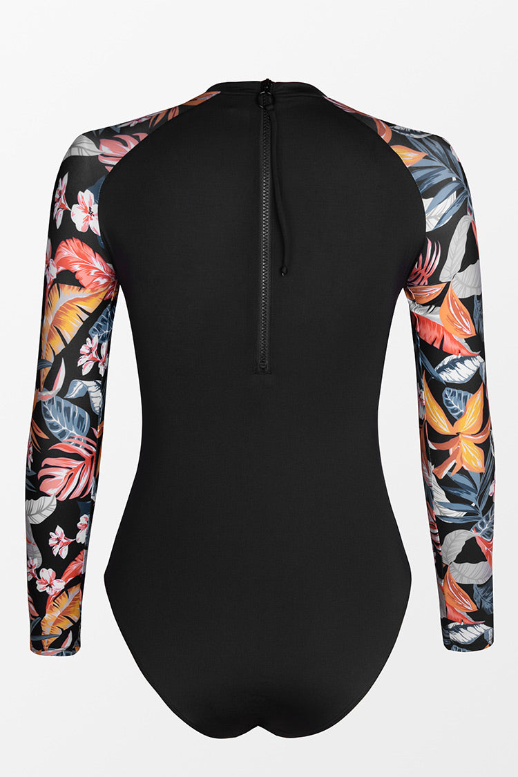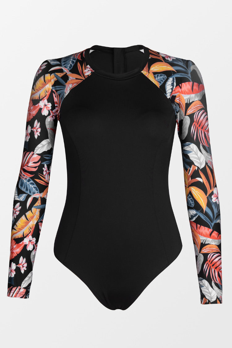 Maillot de bain une pièce à manches longues imprimé tropicale
