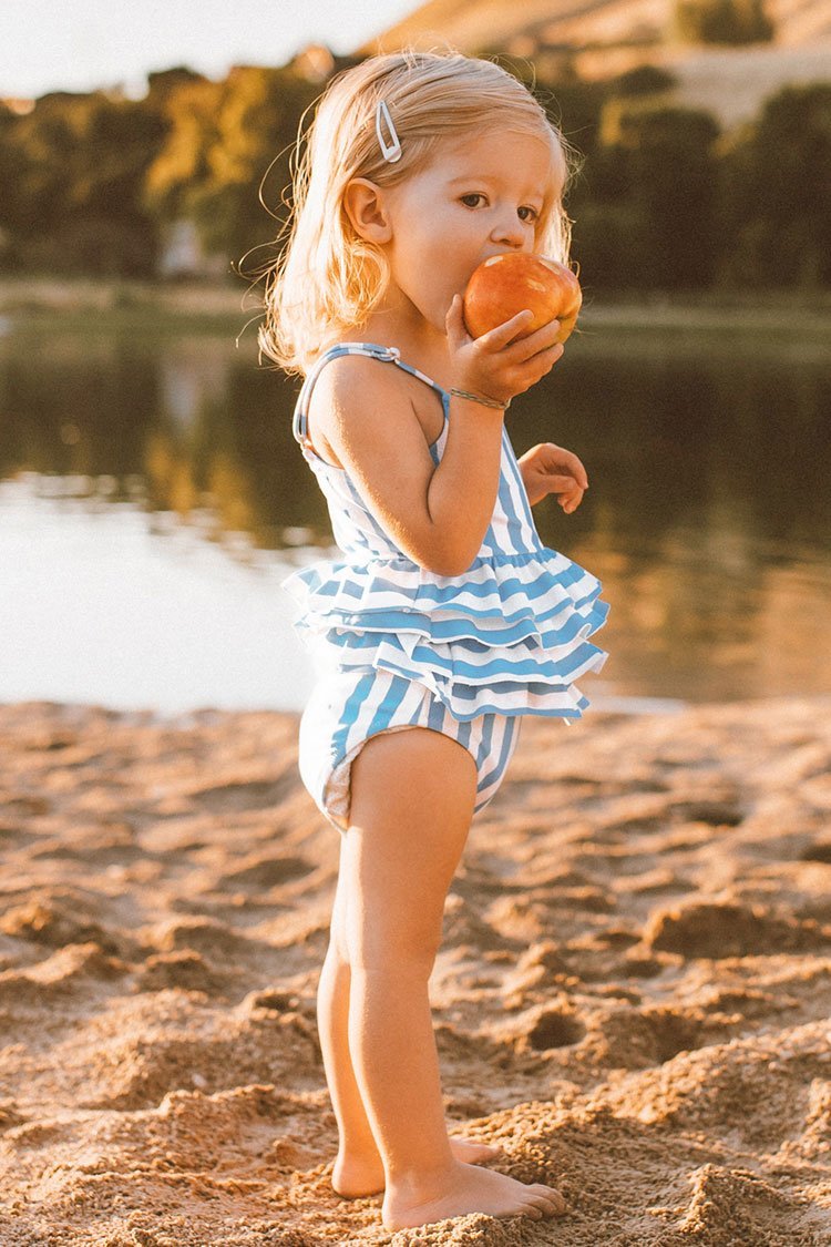 Maillot de bain une pièce à rayures bleues et blanches pour filles