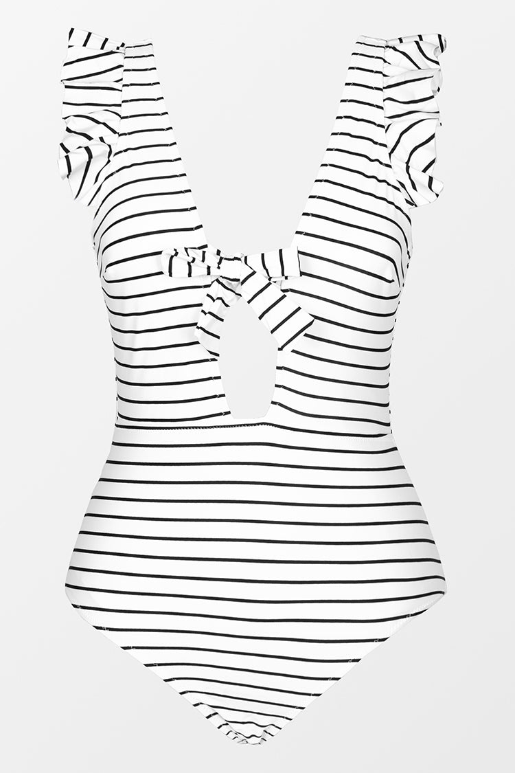 Maillot de bain une pièce à volants rayé blanc et noir