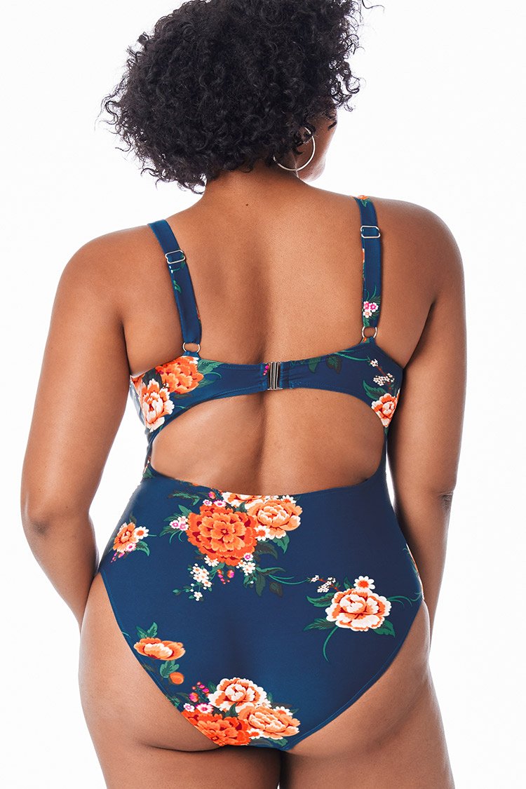 Maillot de bain une pièce bleu marine à découpes dans le dos