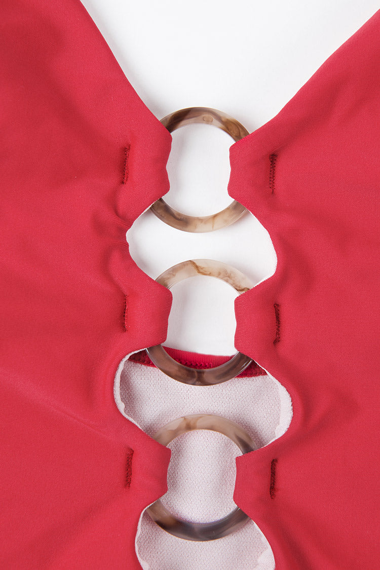 Maillot de bain une pièce couleur unie avec anneau sur le devant