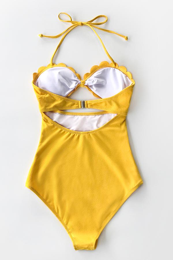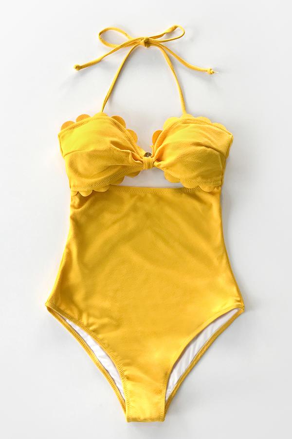 HomeMaillot de bain une-pièce découpé jaune festonné