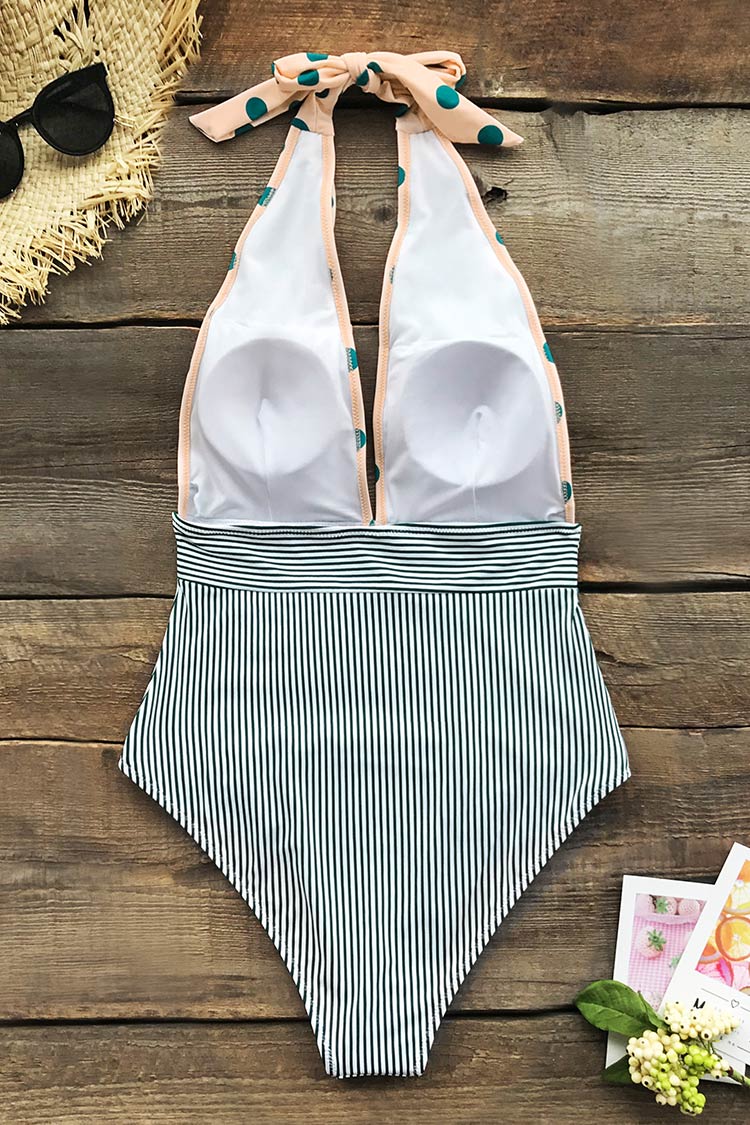 HomeMaillot de bain une pièce dos nu à pois et rayure