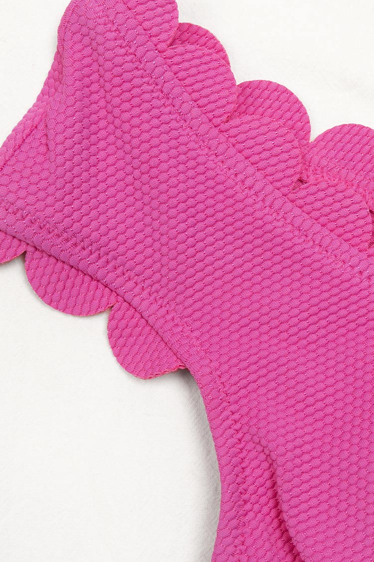 Maillot de bain une pièce festonné rose à col en V