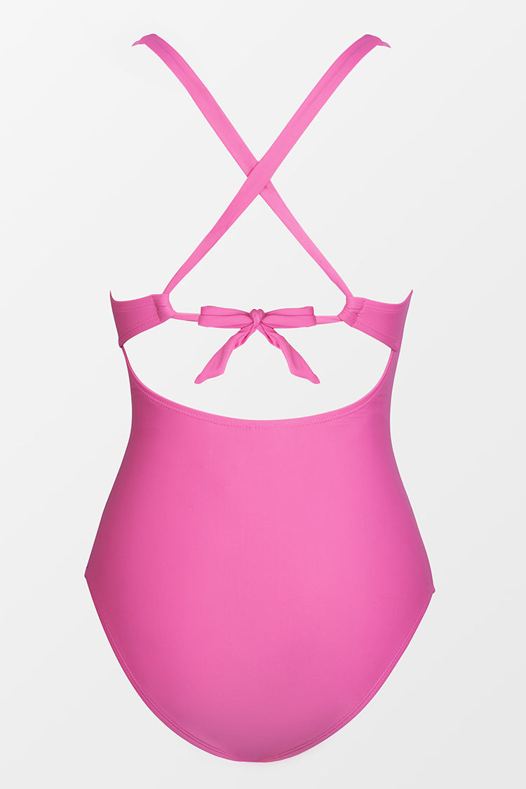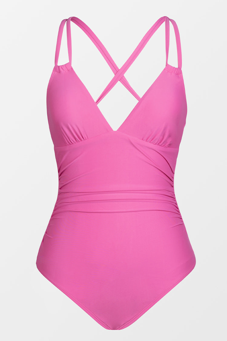 Maillot de bain une pièce froncé sur les côtés à doubles bretelles