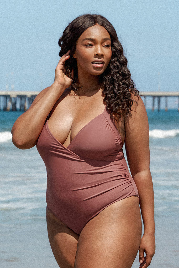 HomeMaillot de bain une pièce grande taille cache-cœur corail clair
