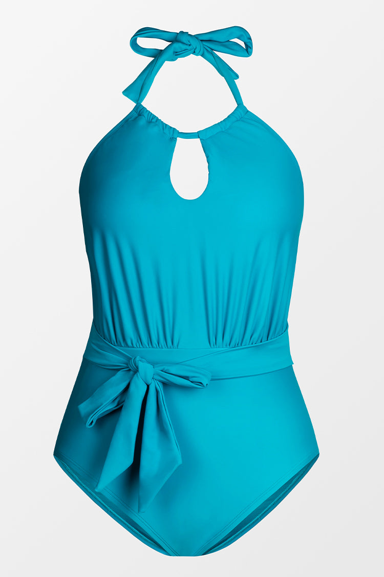 Maillot de bain une pièce grande taille couleur unie avec ceinture