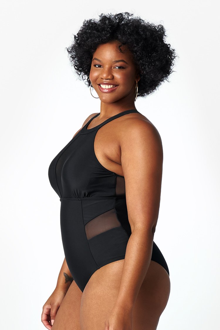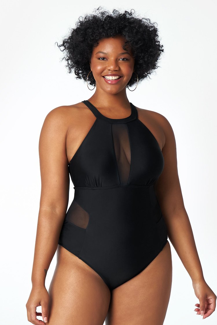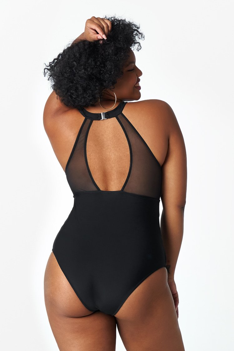 HomeMaillot de bain une pièce grande taille en mesh à col montant