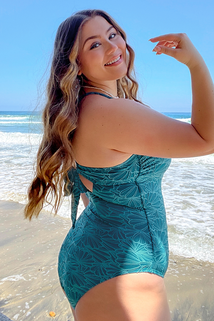 Maillot de bain une pièce grande taille fleuri à col carré