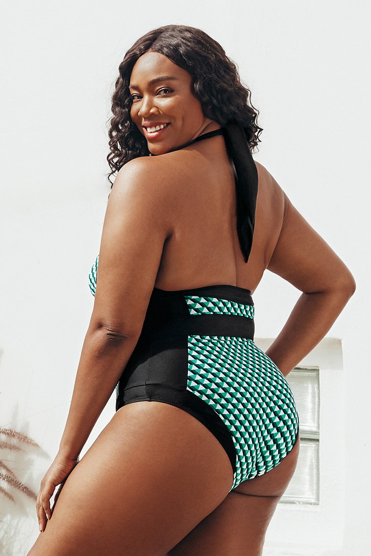 Maillot de bain une pièce grande taille licou imprimé géométrique