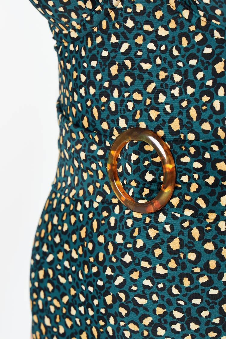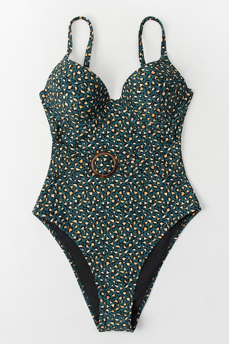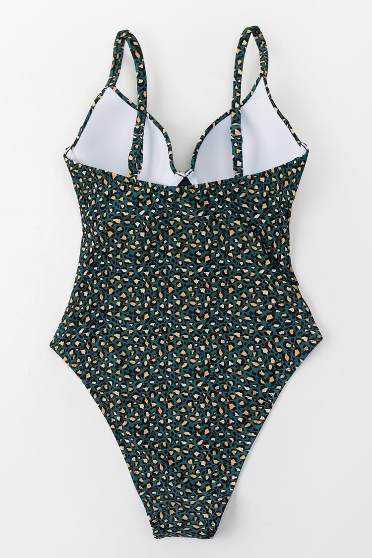 Maillot de bain une pièce imprimé léopard avec anneau