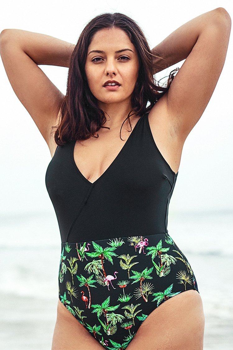 HomeMaillot de bain une-pièce grande taille imprimé palmier