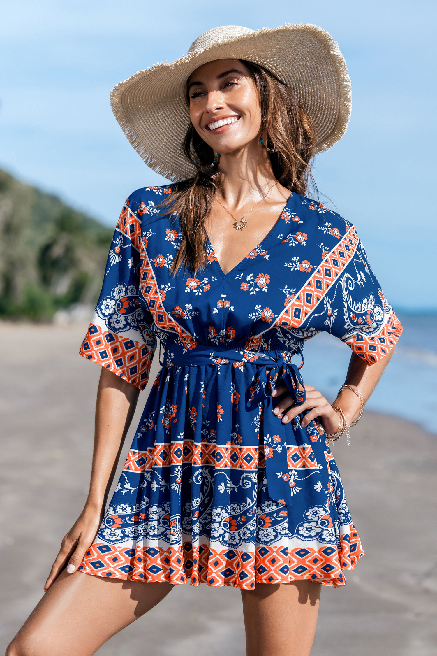 La robe mini est faite pour les journées insouciantes et les escapades de rêve ! Son décolleté plongeant, ses manches courtes fluides et sa taille cintrée créent une silhouette flatteuse, tandis que le tissu aérien assure une sensation de légèreté.