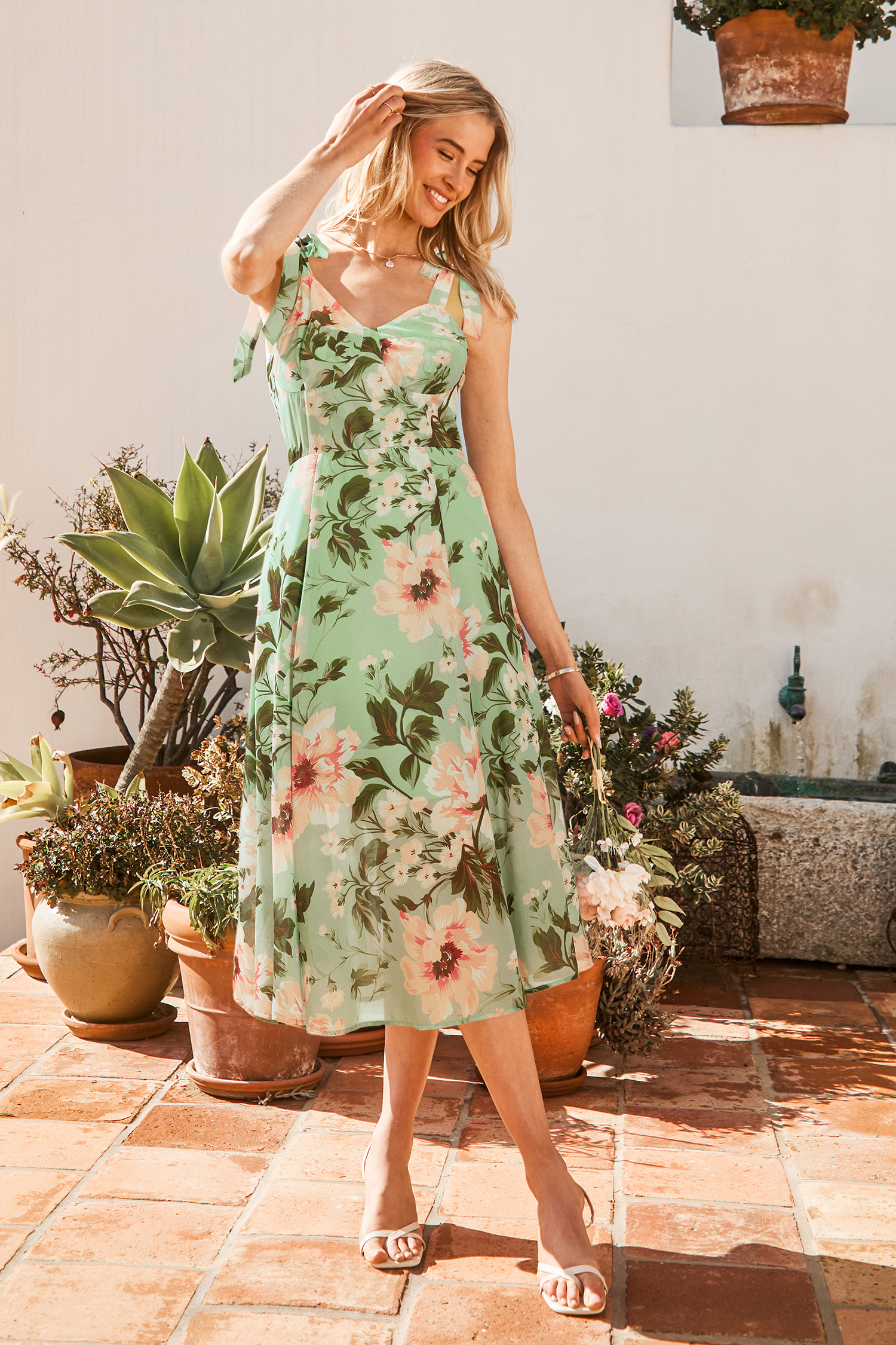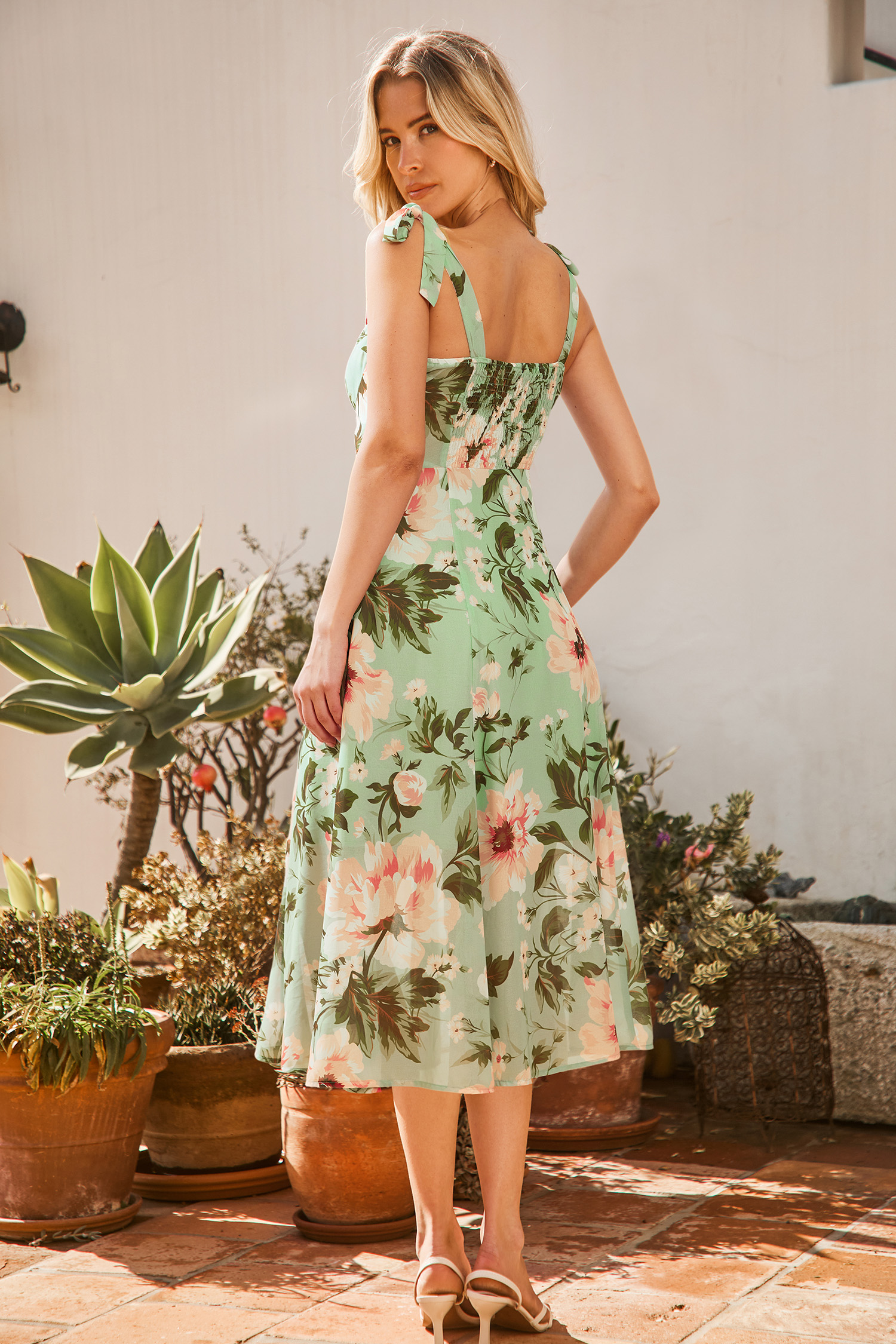 HomeRobe florale col cœur dos à smocks