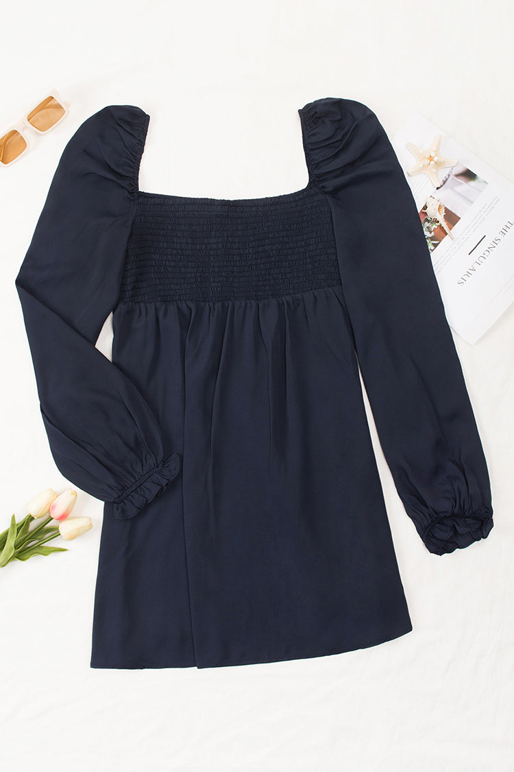 Mini-robe smockée à manches longues