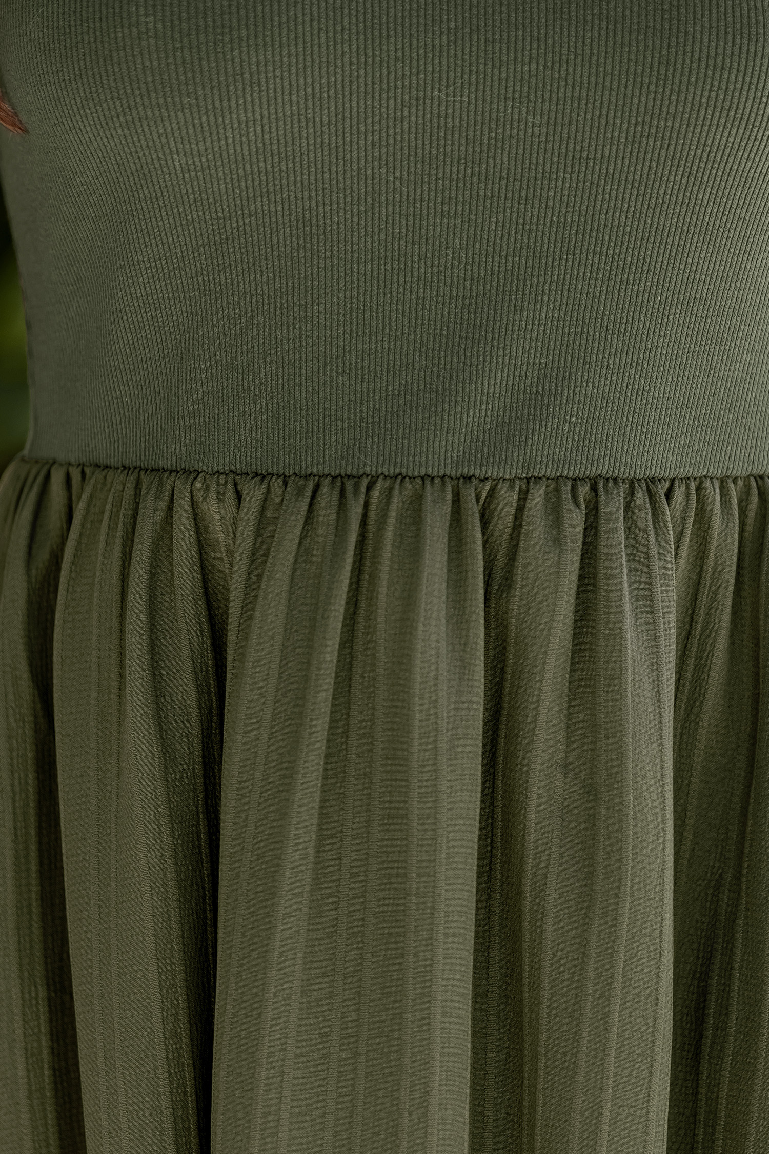 Robe à col carré en velours côtelé olive